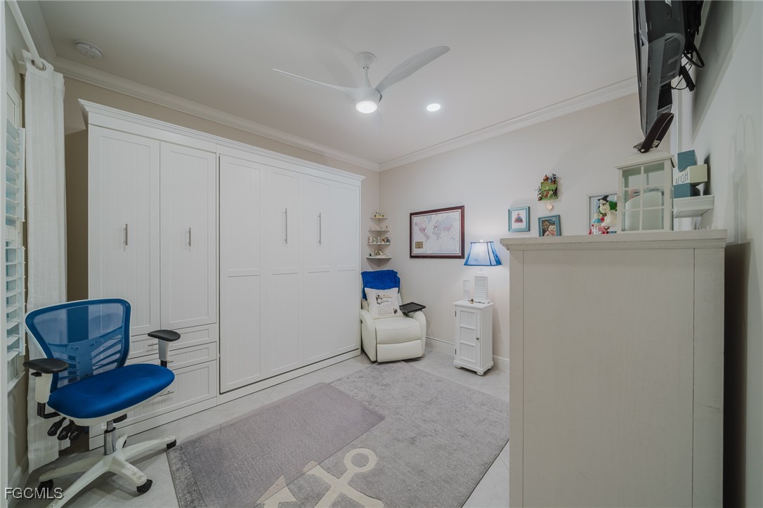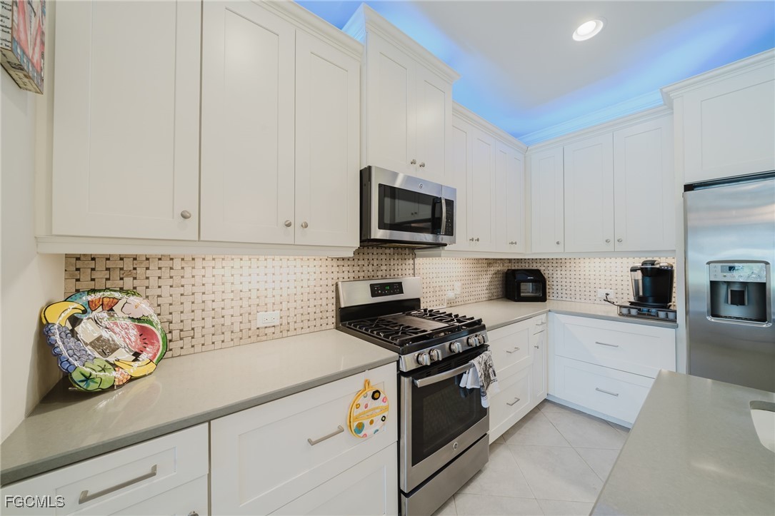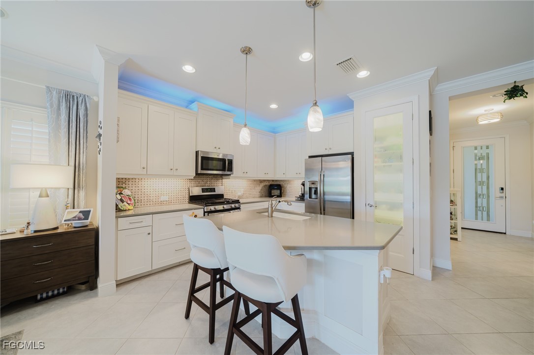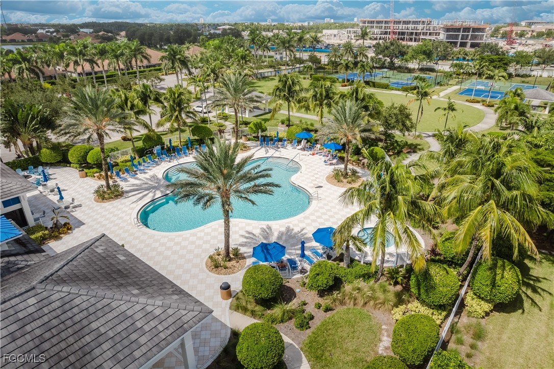 Florida living in this LAKEFRONT VILLA at Watermark, one of Fort Myers’ premier gated communities. This upgraded home stands apart—loaded to the heavens with designer features and thoughtful enhancements not found in any other villa. Offering 2 bedrooms + den/office, 2 full baths, and a 2-car garage, this modern, open-concept floor plan showcases soaring volume ceilings, abundant natural light, and elegant tile flooring set on the diagonal. The chef’s kitchen features a gas cooktop, upgraded backsplash, LED upper-cabinet lighting, pendant-lit center island, and a custom walk-in pantry with glass door and built-in lighting. Sophisticated details include crown molding, a coffered ceilings in the living room with a matching feature wall in the dining and upgraded fans and lighting throughout. The spacious living room offers lake views, plantation shutters, sconce accent lighting, and direct access to the expanded screened lanai—complete with motorized hurricane screens, ambient lighting, and extended paver decking. Perfect for morning coffee or evening cocktails by the water, this space seamlessly extends your indoor living outdoors. The primary suite is a retreat of its own, featuring tranquil lake views, a luxurious bath with dual vanities, a frameless glass walk-in shower, and a custom closet system with premium cabinetry. The guest suite includes a Murphy bed, ideal for flexible use or hosting guests, while the den easily converts to a third bedroom. The garage is fully outfitted with built-in storage, workbenches, and a decked attic for additional storage capacity. Tons of storage with no wasted negative space. Peace of mind comes with hurricane-impact windows and rear storm screens, while the upgraded landscaping, decorative fountain with lighting, and custom glass front entry add unmatched curb appeal. At Watermark residents enjoy resort-style amenities including a heated 71,000-gallon pool and spa, modern fitness center, tennis and pickleball courts, bocce ball, basketball, dog park, and scenic walking paths. The clubhouse features a stylish community room, BBQ grills, and social spaces. With low HOA fees, no CDD, and exterior maintenance (sidewalk, driveway and cleaning) handled by the community, living here is effortless. Conveniently located minutes from I-75, RSW International Airport, shopping, dining, healthcare, and the Gulf beaches, Watermark offers the perfect blend of comfort, convenience, and lifestyle. Area Growth Advantage: Just down the road, the new Lee Health Fort Myers Hospital (under construction at Colonial Blvd. & Challenger Blvd.) is set to elevate the area with world-class healthcare, professional employment opportunities, and long-term property value appreciation—further enhancing Watermark’s appeal. This lakefront villa represents one of the best values with all of the upgrades, hurricane-ready, and lake view. Experience luxury, lifestyle, and location—all in one extraordinary home.