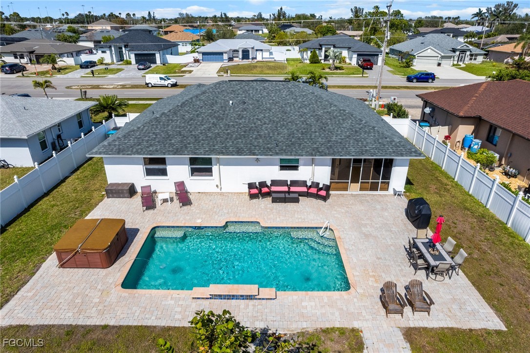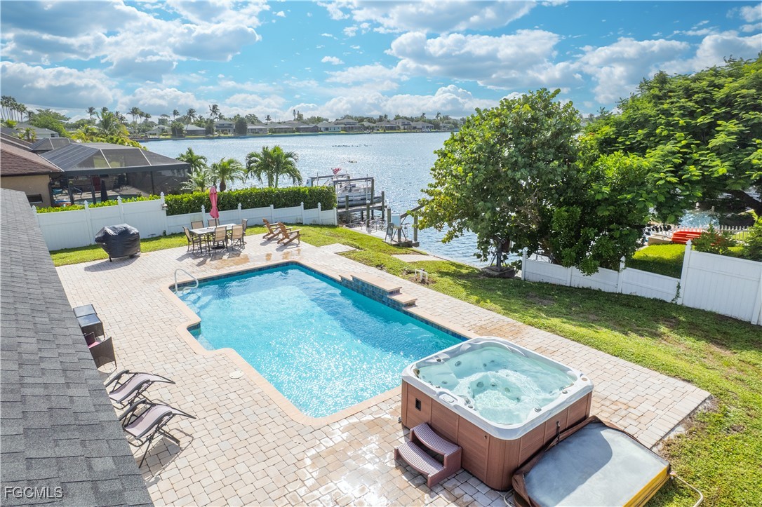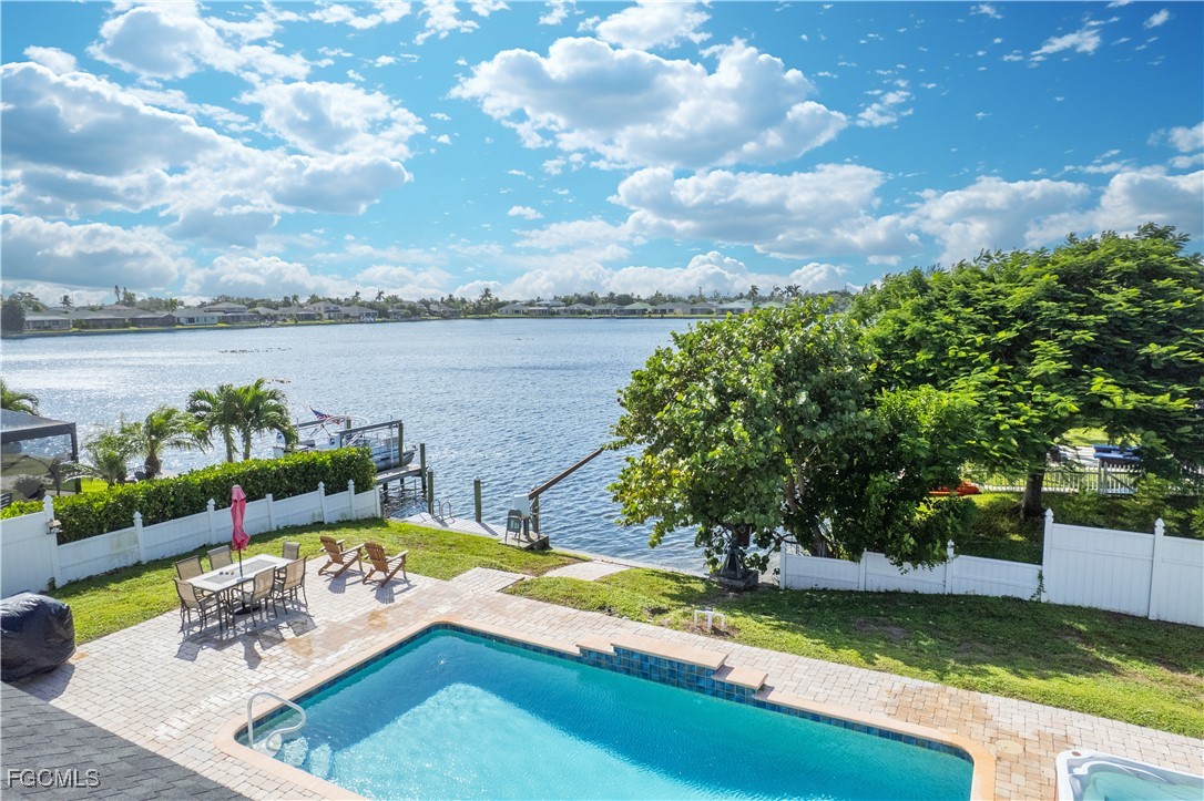 Million-dollar lake view with gorgeous sunsets – Pool Home with Southern Exposure! Discover your Florida dream home with stunning big water views of Weatherly Lake and over 30 miles of freshwater canal access. This beautifully updated 3-bedroom, 2-bathroom pool home offers the perfect balance of lifestyle, location, and value in highly desirable SW Cape Coral. With a brand new 2023 roof with warranty, new A/C system, upgraded pool equipment including a 130,000 BTU heater, and heavy-duty boat davits with 2 lifts, this home is move-in ready and built for comfort, fun, and long-term peace of mind. Step inside to soaring vaulted ceilings, abundant natural light, and an open layout that highlights lake views from multiple rooms. The kitchen is upgraded with granite counters, white shaker cabinetry, and newer stainless-steel appliances, including a water-view sink. The spacious primary suite and guest bedrooms are generously sized, making this home ideal for families, seasonal living, or investment use. For added convenience, enjoy a 2-car garage, indoor laundry, and a new washer/dryer in 2024. Your private outdoor oasis awaits with southern exposure for all-day sunshine, a screened pool, hot tub, sun deck, and an oversized fenced yard that is pet-safe and perfect for entertaining. A 15-foot dock provides the perfect spot for fishing, kayaking, or launching a small boat or jet ski. The home is sold fully furnished (optional), making it truly turn-key. Best of all, there are no HOA fees and no flood insurance required—this property has never flooded and is outside the flood zone. Investors will love the proven track record of success as a high-earning short-term rental, achieving “Superhost” status within 6 months in a competitive market. Enjoy a quiet neighborhood with excellent privacy while being close to everything. You’re just minutes from shopping, dining, top-rated schools, parks, and Cape Coral’s hottest new developments, including the reimagined Yacht Club with beach and marina, Bimini Square, The Cove, and Slipaway Marina. For outdoor lovers, nearby boat ramps provide quick access to fishing and waterfront destinations, while golfers will appreciate proximity to Palmetto Pines Country Club and Coral Oaks Golf Course. Whether you’re looking for a full-time residence, seasonal getaway, or a strong-performing investment property, this Cape Coral waterfront home delivers it all—breathtaking views, valuable upgrades, and one of the best locations in the city.