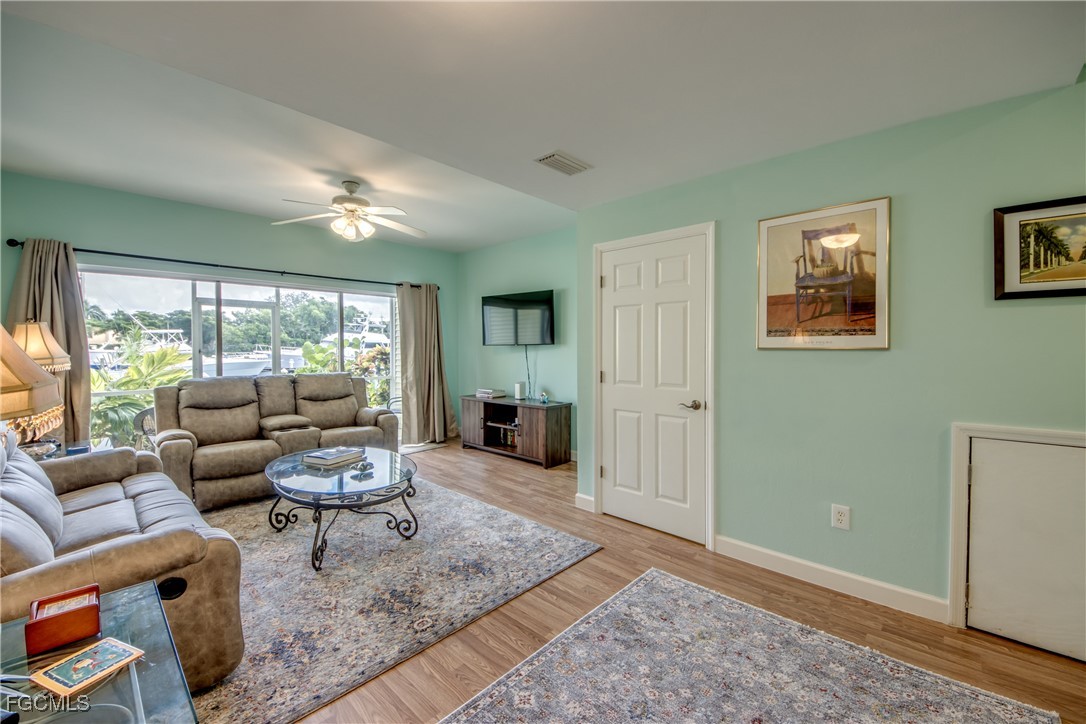 BOATER’S PARADISE TOWNHOME with SPECTACULAR WATER VIEWS . . . This 2-story FL Keys style townhome offers breathtaking water views and direct access to the Caloosahatchee River. The first floor’s open plan with new flooring features an eat-in kitchen with a pass-thru bar, a spacious dining/living area, a guest bathroom, and under-stairs storage. Sliding glass doors lead to a screened lanai overlooking tranquil water views and active local wildlife. Upstairs, the ensuite main bedroom includes dual reach-in closets, while the second bedroom is located on the opposite end of the hallway, separated by a full bathroom, a linen closet, and a laundry closet. The second floor and stairs are carpeted. Enjoy the community cabana with covered eating area, heated pool with sun deck, BBQ grill, and marina boat docks. The Shipyard Villas are situated on a 200' deep-water canal with close proximity to the Caloosahatchee River—perfect for navigating to the Gulf of Mexico or through the locks upriver to the Atlantic Ocean (boat docks are first-come, first-serve, accommodating boats up to 44’ x 14.5’ x 6’, with water and limited electricity available). This prime location is within walking distance to Marinatown and close to downtown Fort Myers, just minutes from shopping, dining, banking, and major highways (US 41, I-75). It’s also convenient to Fort Myers and Sanibel Island beaches and served by SWFL International Airport and Punta Gorda Airport. During season, a free trolley provides service to the revitalized river district of downtown Fort Myers. This townhome is partially furnished and has been pre-vetted by a mortgage company.