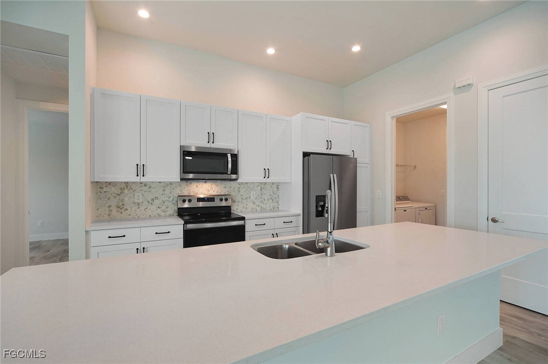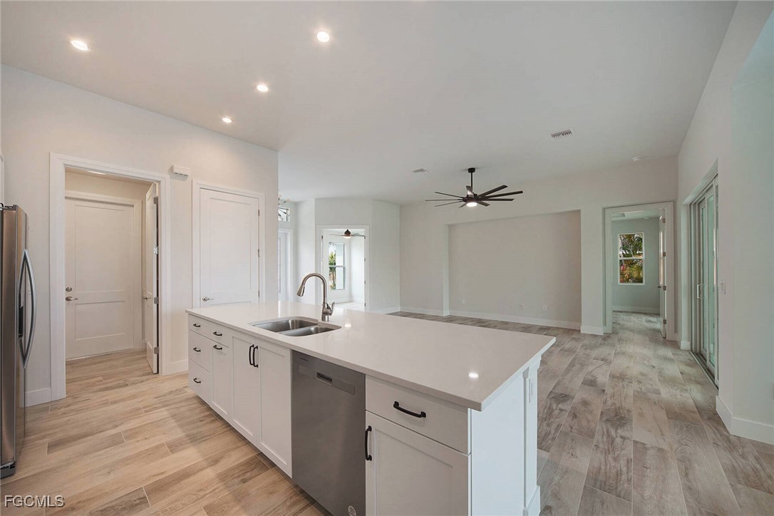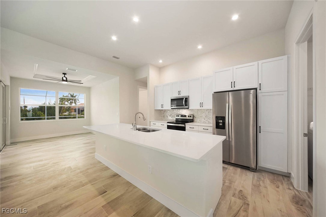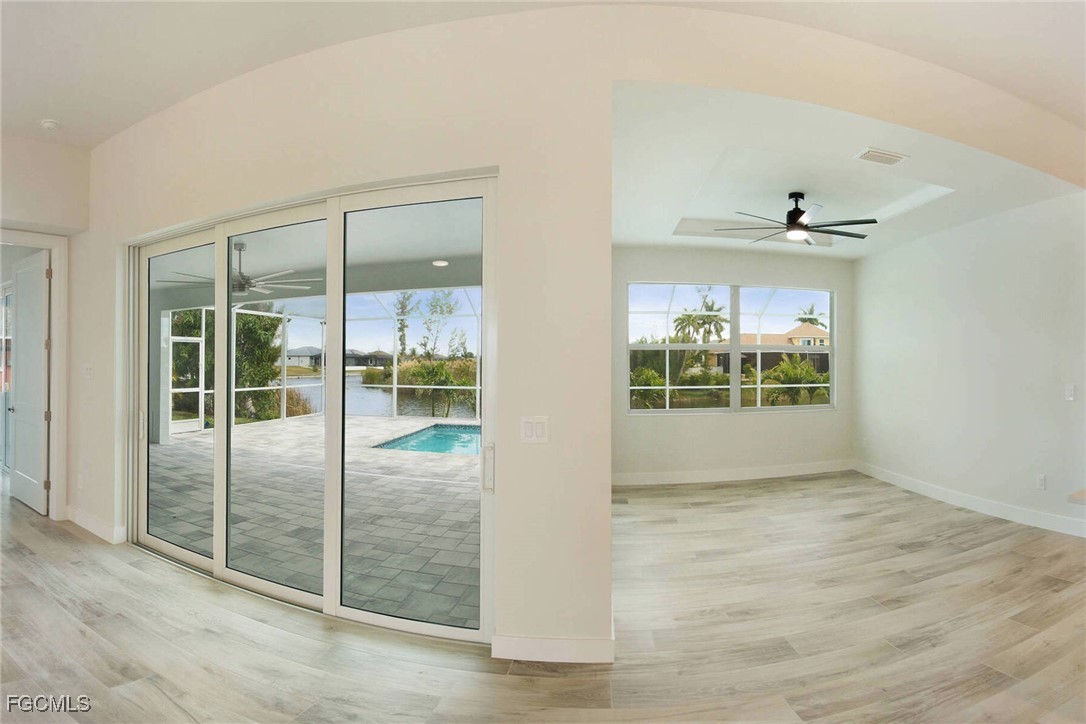 Welcome to this stunning 3-bedroom, 2-bathroom (including a pool bath) home boasting a spacious 1,931 square feet of luxurious living space. Situated in a desirable location with an INTERSECTING CANAL VIEW, this property offers the perfect blend of elegance and functionality. As you enter, you'll be greeted by an inviting ambiance enhanced by the contemporary design and premium finishes throughout. The expansive floor plan features 8-foot interior doors and sliders, creating a seamless flow between the indoor and outdoor spaces. The heart of the home is the beautifully appointed kitchen, which showcases QUARTZ countertops, complemented by sleek cabinetry and modern appliances. Entertain guests effortlessly in the open-concept living and dining areas, adorned with exquisite tiles that exude both style and durability. Retreat to the master suite, a tranquil haven complete with a spa-like ensuite bathroom and ample closet space. Two additional well-appointed bedrooms provide comfort and privacy for family members or guests. Step outside to your private oasis, where you'll find a sparkling FRESH WATER CANAL WITH POOL AND SPA surrounded by a pavered pool deck and lanai, perfect for relaxing or hosting outdoor gatherings. The premium landscaping package enhances the curb appeal of the property, creating a picturesque setting to enjoy year-round. Additional features include a TILE ROOF WITH IMPACT WINDOWS AND SLIDERS for added security and energy efficiency, as well as a pool heater for year-round enjoyment. The slightly oversized garage offers extra storage space and is finished with epoxy flooring for a polished look. Conveniently located near shopping, dining, and entertainment options, this meticulously maintained home offers the ultimate Florida lifestyle experience. Don't miss the opportunity to make this exceptional property your own!