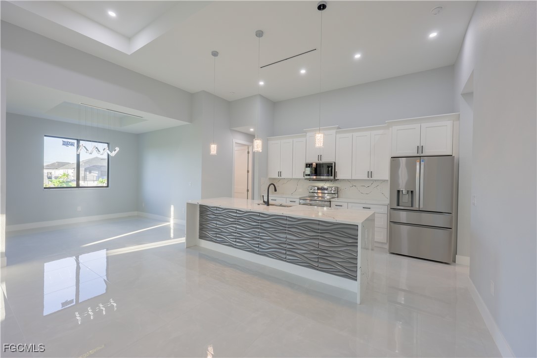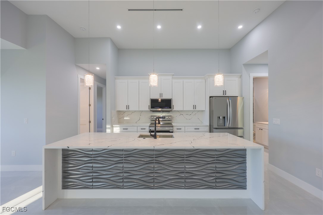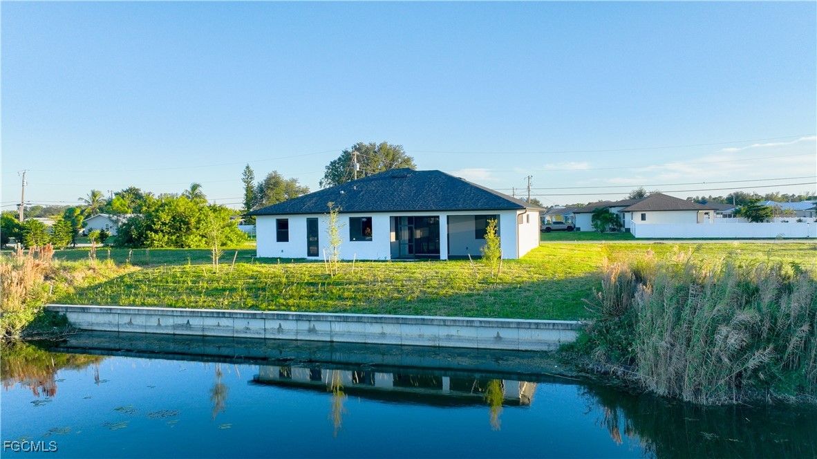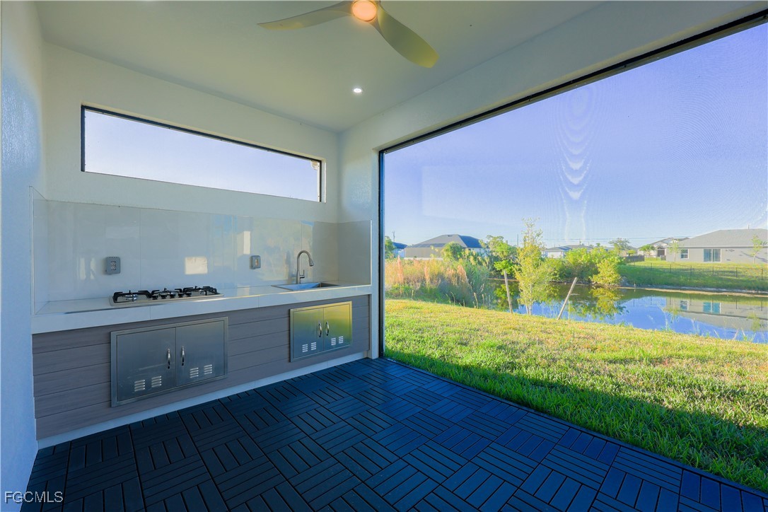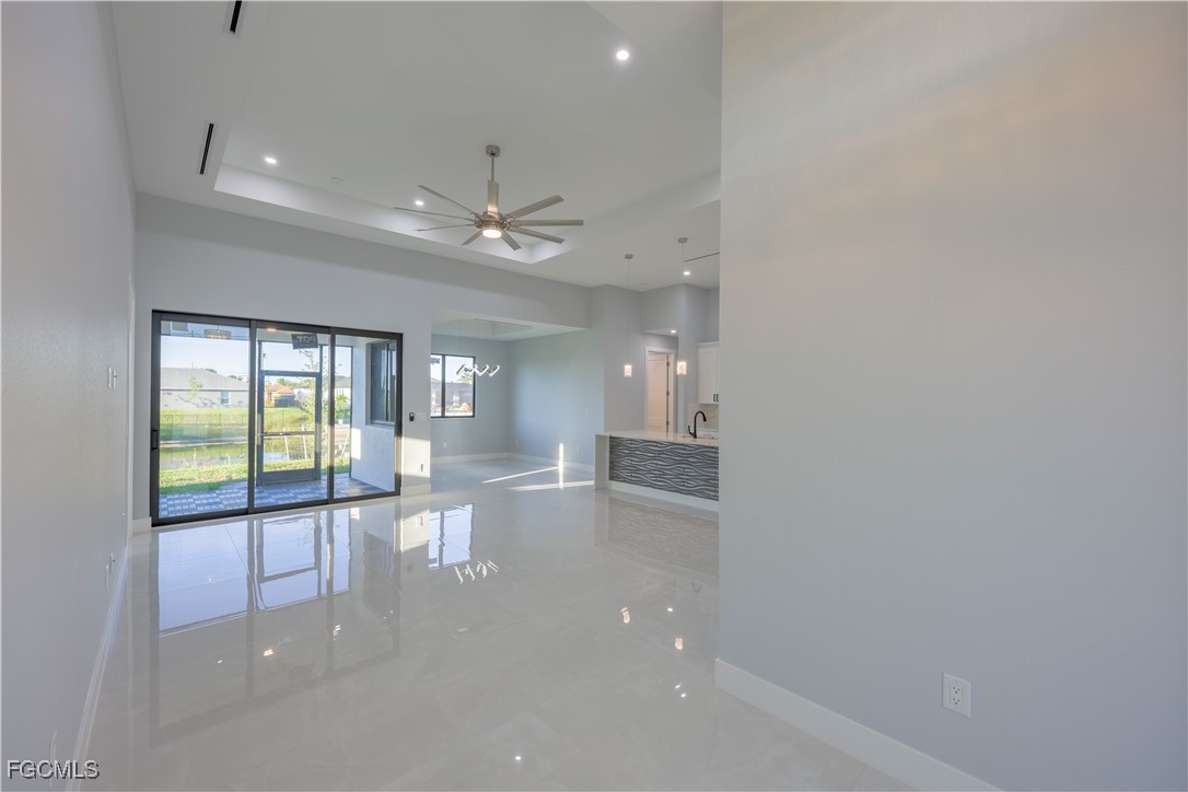 CANAL VIEW HOME, offers the perfect combination of luxury, functionality, and location. Featuring 4 spacious bedrooms, 3 full bathrooms, and over 2,000 sq ft of living space under air, this residence is ideal for both family living and entertaining.The open-concept layout is enhanced by elegant 32" x 32" tile flooring throughout, soaring tray ceilings, and expansive 3-panel PGT impact sliding doors that flood the home with natural light. The modern kitchen is a true showpiece, complete with a striking waterfall quartz island, ample cabinetry, and premium finishes. Each bathroom includes stylish walk-in showers, while the bedrooms offer generous space and custom walk-in closets. Step outside to a fully screened lanai featuring a built-in outdoor kitchen, perfect for enjoying serene canal views and the Florida lifestyle. There is also room to add a pool, allowing you to create your own private retreat. Additional highlights include a durable shingle roof, impact-resistant windows and doors, and a spacious 2-car garage. Best of all, all assessments have been paid — a valuable bonus for the new owner.NO HOA , NO FLOOD ZONE