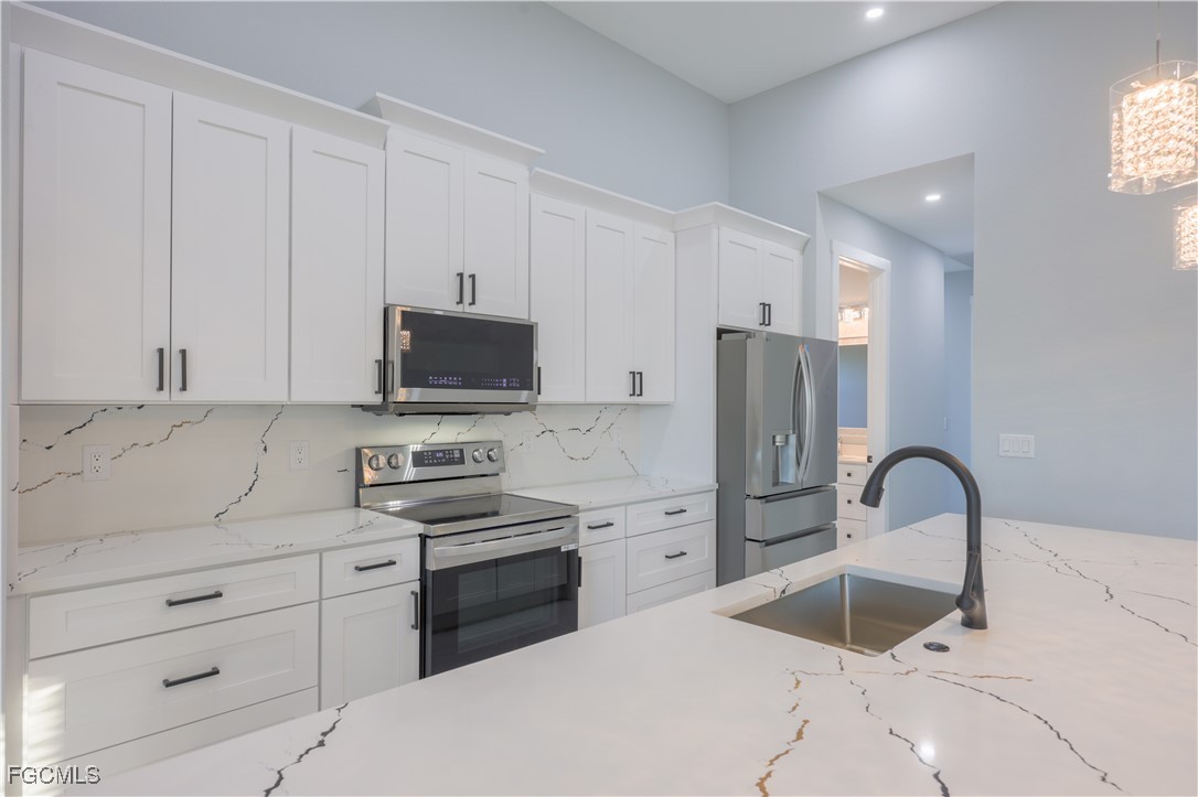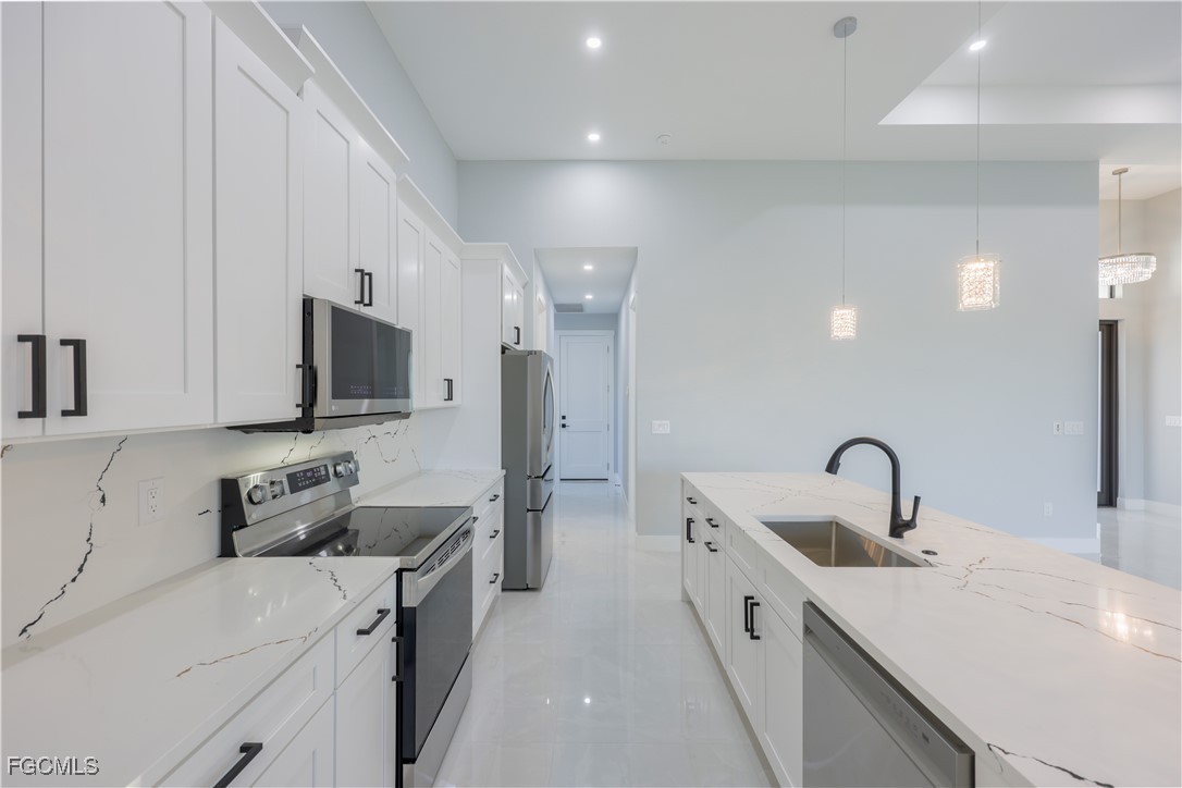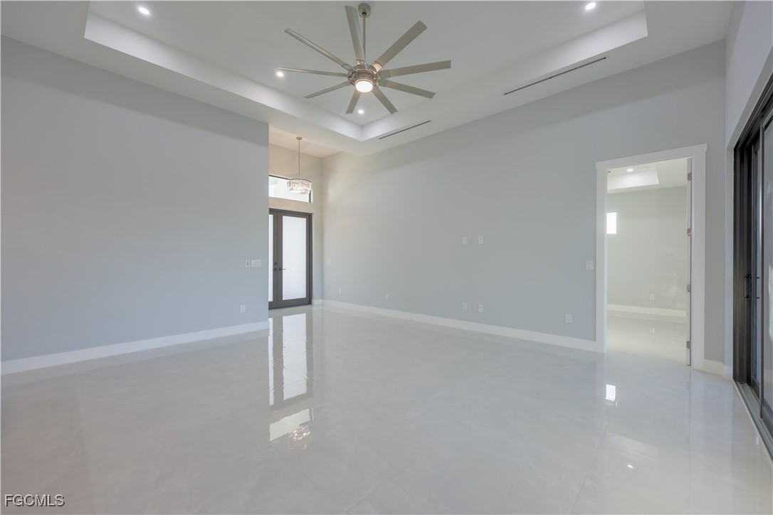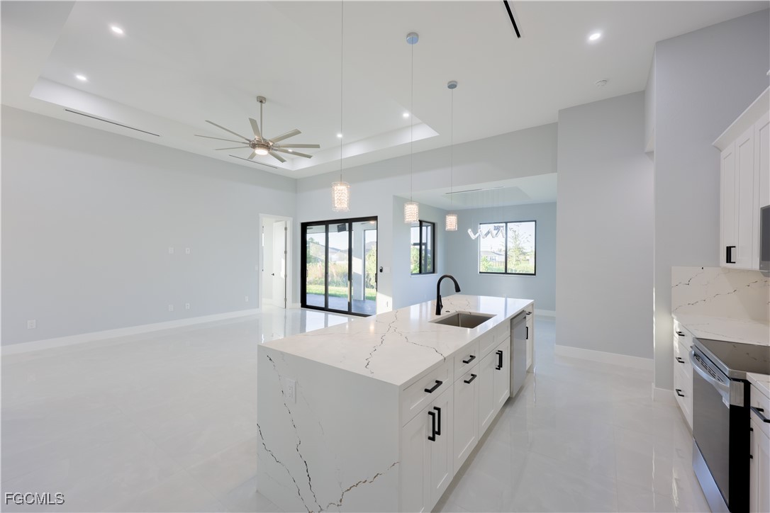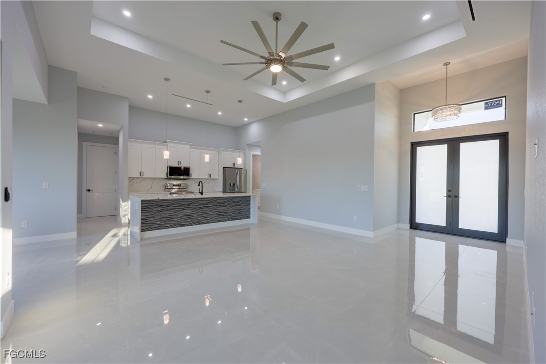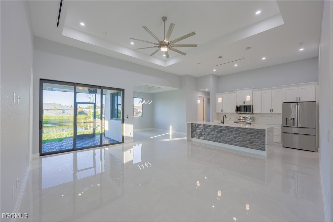 CANAL VIEW HOME, offers the perfect combination of luxury, functionality, and location. Featuring 4 spacious bedrooms, 3 full bathrooms, and over 2,000 sq ft of living space under air, this residence is ideal for both family living and entertaining.The open-concept layout is enhanced by elegant 32" x 32" tile flooring throughout, soaring tray ceilings, and expansive 3-panel PGT impact sliding doors that flood the home with natural light. The modern kitchen is a true showpiece, complete with a striking waterfall quartz island, ample cabinetry, and premium finishes. Each bathroom includes stylish walk-in showers, while the bedrooms offer generous space and custom walk-in closets. Step outside to a fully screened lanai featuring a built-in outdoor kitchen, perfect for enjoying serene canal views and the Florida lifestyle. There is also room to add a pool, allowing you to create your own private retreat. Additional highlights include a durable shingle roof, impact-resistant windows and doors, and a spacious 2-car garage. Best of all, all assessments have been paid — a valuable bonus for the new owner.NO HOA , NO FLOOD ZONE