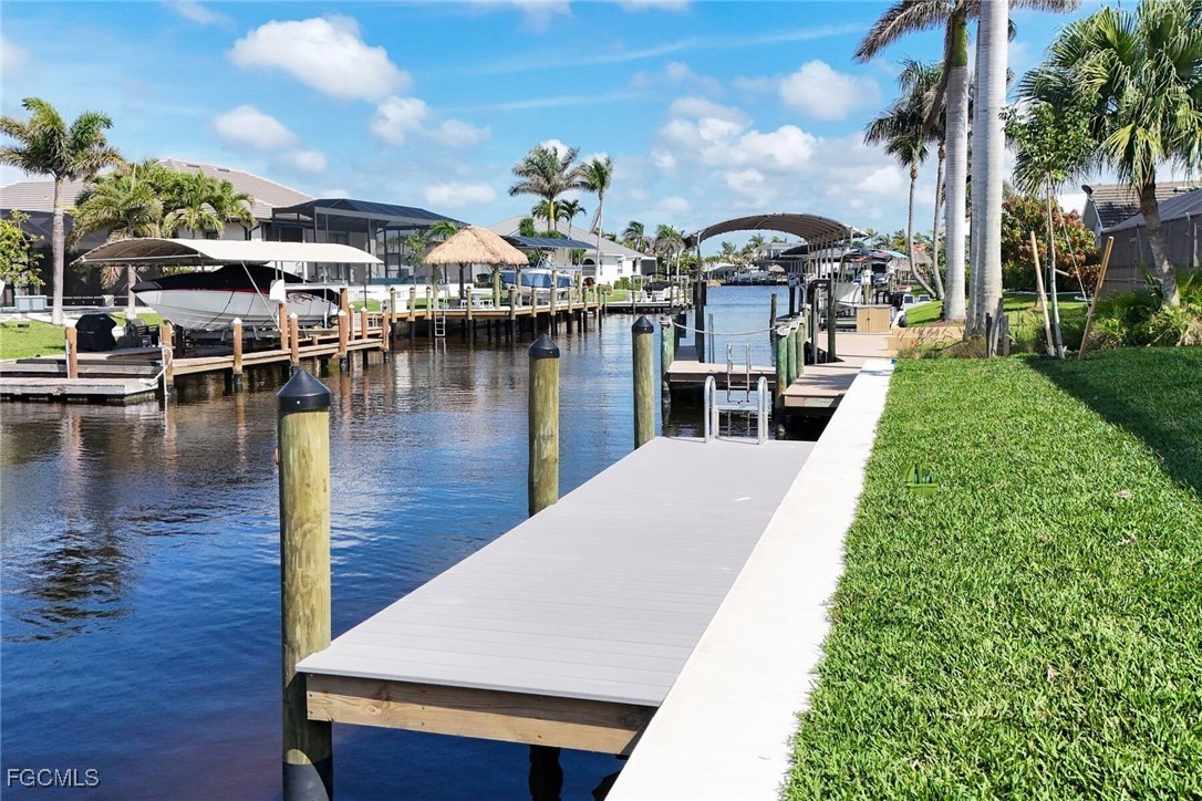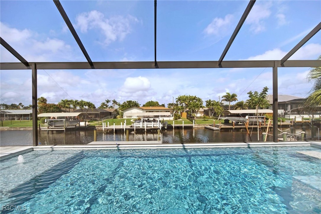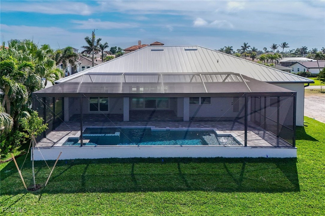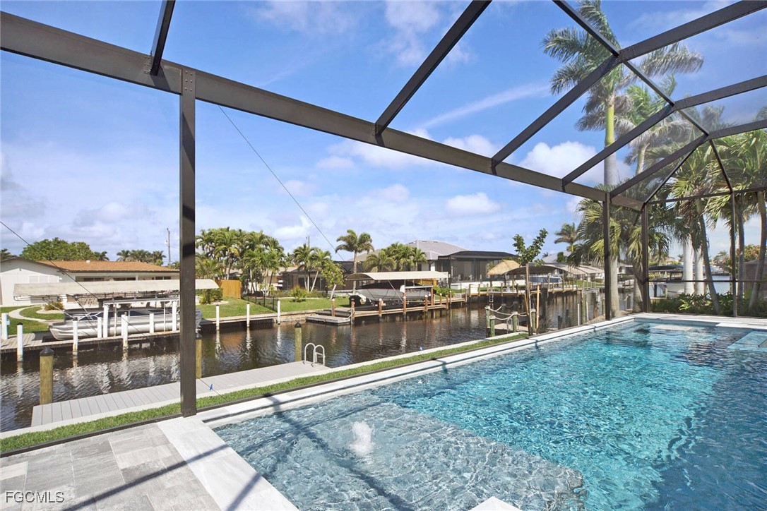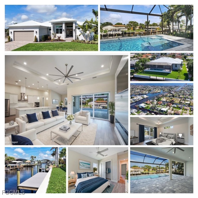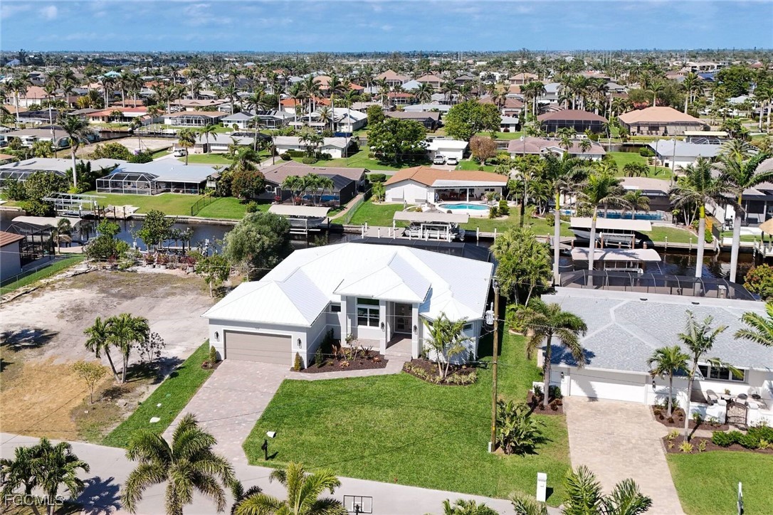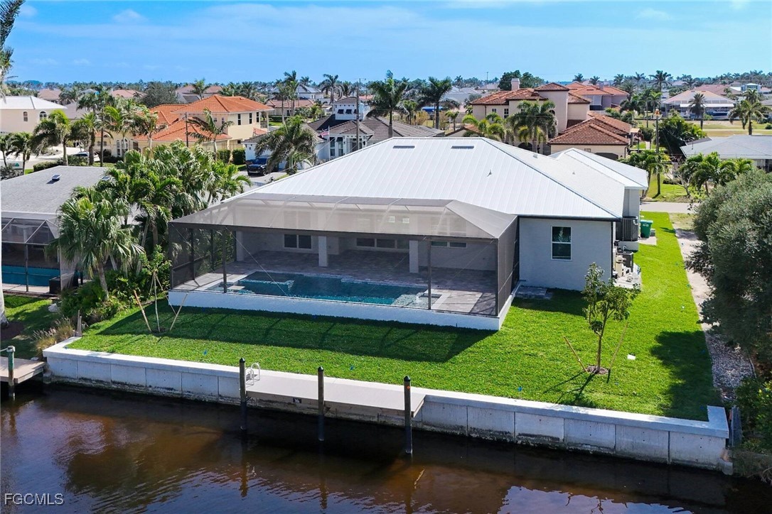 Just 5 Minutes to Open Water – A Boater’s Dream Come True! Located in one of Cape Coral’s most desirable waterfront communities, this brand-new 2025 custom Gulf access pool home offers an unbeatable location that every boater will appreciate. With direct sailboat access and no bridges, you're only moments from the Caloosahatchee River and the open Gulf—ideal for spontaneous days on the water and sunset cruises. Whether you're an avid boater or simply seeking the best of Southwest Florida’s coastal lifestyle, this exceptional property checks every box. Designed with luxury, durability, and comfort in mind, this 3-bedroom + den, 2.5-bath home features 2,192 square feet of beautifully appointed living space. The home’s elevated flood-resistant construction includes a metal roof, hurricane-impact windows and doors, and a heavy-duty seawall with a wide cap and tall elevation for long-term peace of mind. Inside, soaring 12-foot ceilings with tray and crown molding in the great room and master suite create an open, elegant feel. The split-bedroom floor plan offers both privacy and functionality, while the versatile den is perfect for a home office or guest retreat.The primary suite is filled with natural light and offers his-and-her walk-in closets, dual vanities, a freestanding soaking tub, and a stunning walk-through shower with dual heads and controls. Entertain with ease in the spacious great room, formal dining area, and a chef’s kitchen featuring a large breakfast bar and cozy breakfast nook. The huge kitchen island top was cut from a single piece of stone. Custom lighting, ceiling fans, and low-maintenance tile and engineered flooring flow throughout the home. Step outside to your private tropical oasis: a screened lanai with panoramic open-view screens leads to a custom-designed heated pool with a sun shelf, oversized spa, and even a built-in table with underwater seating—perfect for relaxing or entertaining. Brick pavers are the beautiful, low maintenance choice on the pool deck and driveway, and the oversized garage features an epoxy-coated floor for added utility and style. All city water and sewer assessments have been paid, and the location puts you close to Cape Coral’s best amenities, dining, and shopping—yet it's the rare quick Gulf access that truly sets this property apart. Homes this close to open water don’t come along often. Schedule your private showing today and experience the pinnacle of Florida waterfront living.