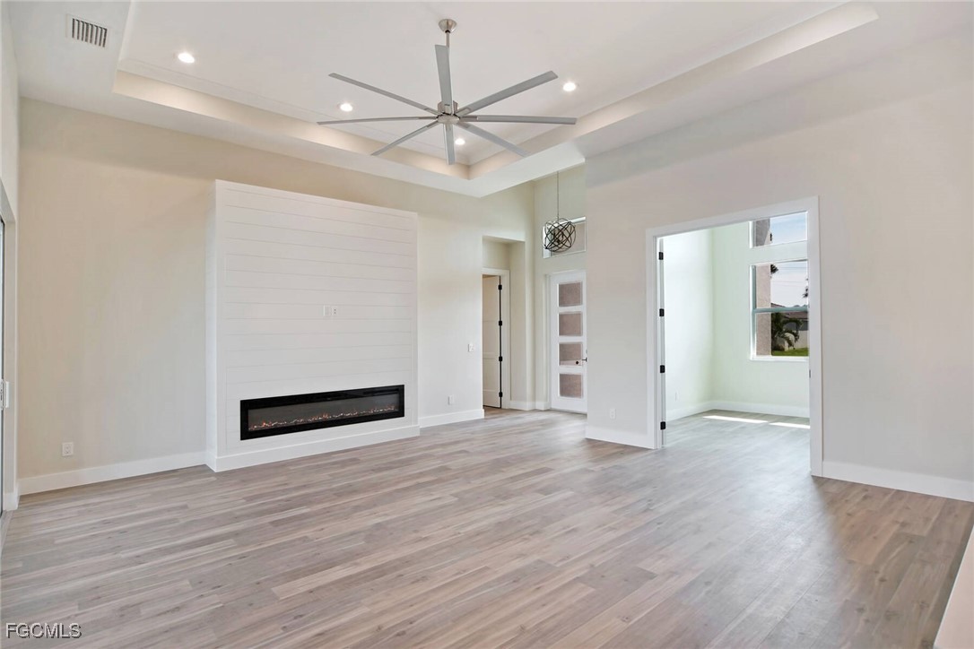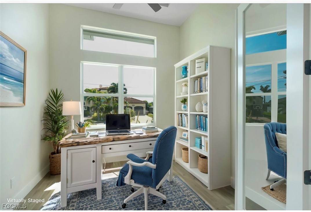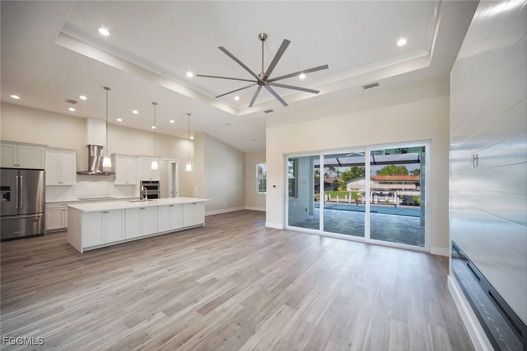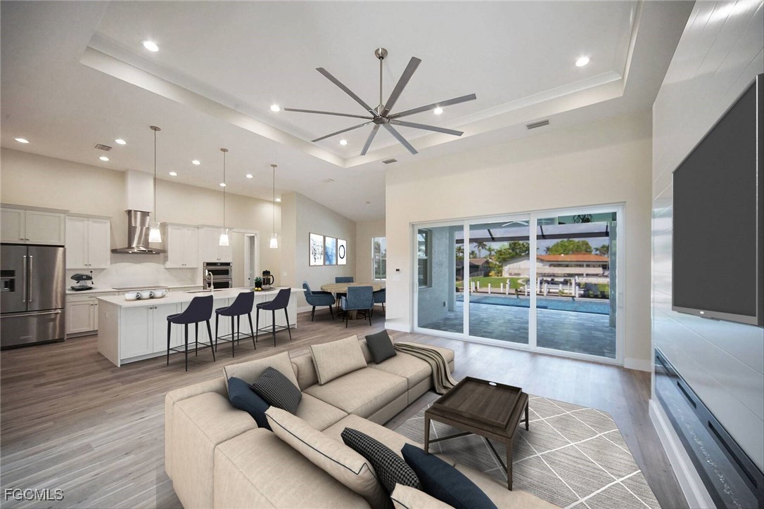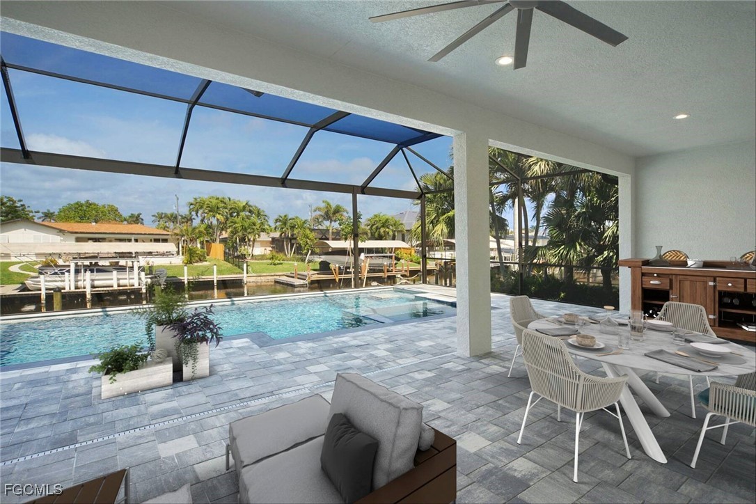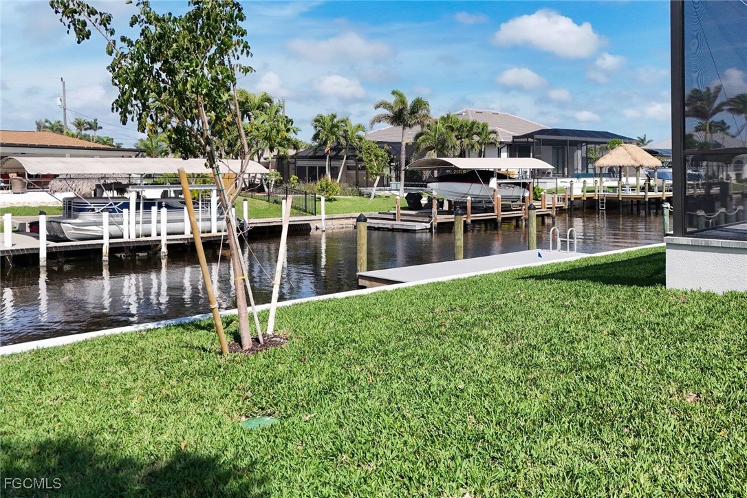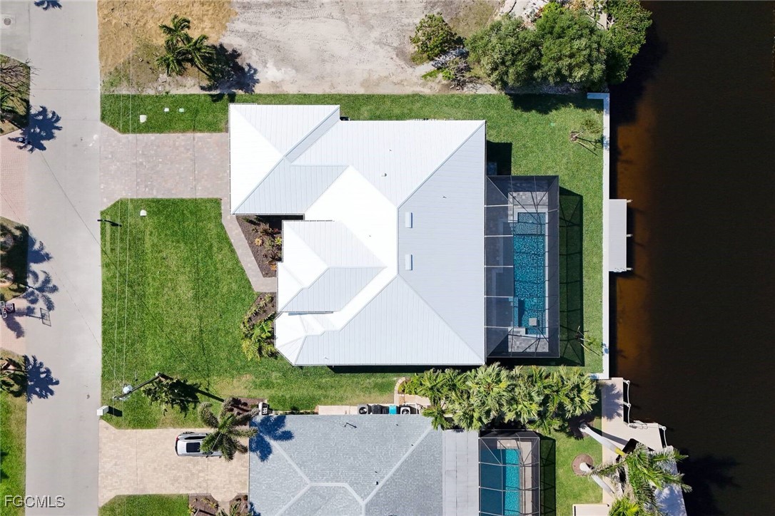 Just 5 Minutes to Open Water – A Boater’s Dream Come True! Located in one of Cape Coral’s most desirable waterfront communities, this brand-new 2025 custom Gulf access pool home offers an unbeatable location that every boater will appreciate. With direct sailboat access and no bridges, you're only moments from the Caloosahatchee River and the open Gulf—ideal for spontaneous days on the water and sunset cruises. Whether you're an avid boater or simply seeking the best of Southwest Florida’s coastal lifestyle, this exceptional property checks every box. Designed with luxury, durability, and comfort in mind, this 3-bedroom + den, 2.5-bath home features 2,192 square feet of beautifully appointed living space. The home’s elevated flood-resistant construction includes a metal roof, hurricane-impact windows and doors, and a heavy-duty seawall with a wide cap and tall elevation for long-term peace of mind. Inside, soaring 12-foot ceilings with tray and crown molding in the great room and master suite create an open, elegant feel. The split-bedroom floor plan offers both privacy and functionality, while the versatile den is perfect for a home office or guest retreat.The primary suite is filled with natural light and offers his-and-her walk-in closets, dual vanities, a freestanding soaking tub, and a stunning walk-through shower with dual heads and controls. Entertain with ease in the spacious great room, formal dining area, and a chef’s kitchen featuring a large breakfast bar and cozy breakfast nook. The huge kitchen island top was cut from a single piece of stone. Custom lighting, ceiling fans, and low-maintenance tile and engineered flooring flow throughout the home. Step outside to your private tropical oasis: a screened lanai with panoramic open-view screens leads to a custom-designed heated pool with a sun shelf, oversized spa, and even a built-in table with underwater seating—perfect for relaxing or entertaining. Brick pavers are the beautiful, low maintenance choice on the pool deck and driveway, and the oversized garage features an epoxy-coated floor for added utility and style. All city water and sewer assessments have been paid, and the location puts you close to Cape Coral’s best amenities, dining, and shopping—yet it's the rare quick Gulf access that truly sets this property apart. Homes this close to open water don’t come along often. Schedule your private showing today and experience the pinnacle of Florida waterfront living.