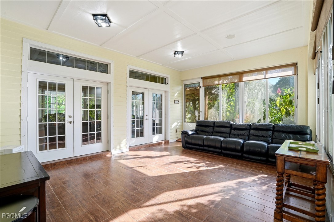 Old Florida charm meets space and privacy in this stunning estate home situated on 2.5 Acres surrounded by mature trees, lush landscaping, and meticulously maintained greenery with a large retention pond with water features creating a picturesque setting. Whether you're enjoying morning coffee on the dock by the water or rocking away on the front porch, the outdoor spaces are designed to impress. Located in the heart of Fort Myers this peaceful retreat is just minutes from shopping, dinning, & entertainment; with easy access to I-75 and just a short drive to SWFL international airport & the white sand beaches. At the center of the estate is the main home brimming with classic architectural details with large windows inviting the natural light in, coffered ceiling, wood staircase, all custom built. The main home features 4 bedrooms 3.5 bathrooms with a 3 car garage. Step inside and you will find wood floors and tile throughout the main living area with carpet in the upstair guest bedrooms. There is also a gas burning fireplace for those chilly winter nights. The primary suite is located on the 1st floor with a dry sauna, tray ceiling, and large primary bathroom with soaking tub and his & her closets & vanities. The chefs kitchen offers plenty of counter space and offers glass inserted wood cabinets, granite countertops, gas stainless steel appliances with dual ovens, large pantry and storage. Property is partially fenced for your 4 legged friends and fully equipped with a reverse osmosis system, 1,000 gallon propane tank with back up Generac generator, mosquito misters, and alarm system. A true highlight of this property is the additional detached dwelling with a 3 car garage and mother-in-law space, making this property ideal for multi-generational living, guest, or potential rental income. Car enthusiasts and hobbyist will appreciate the 6 car garage, providing ample space for vehicles, storage, or even a workshop. Don't miss this 0ne-of-a-kind estate offering space, style, and serenity. Come discover the magic of Old Florida Living today!!