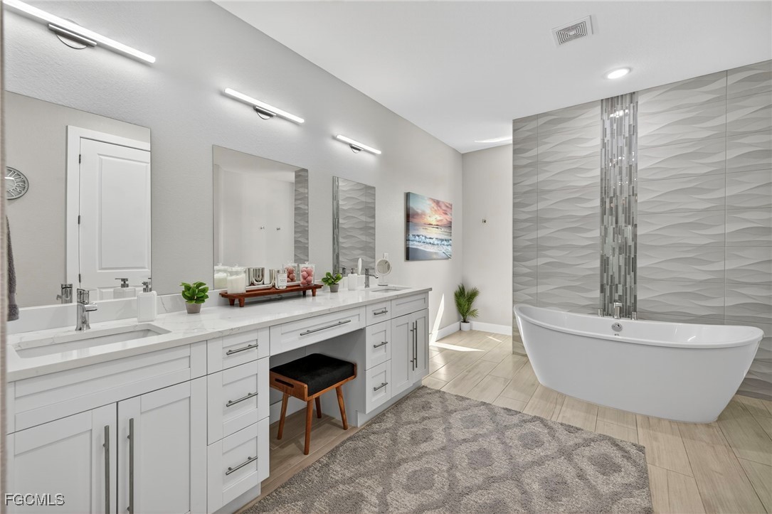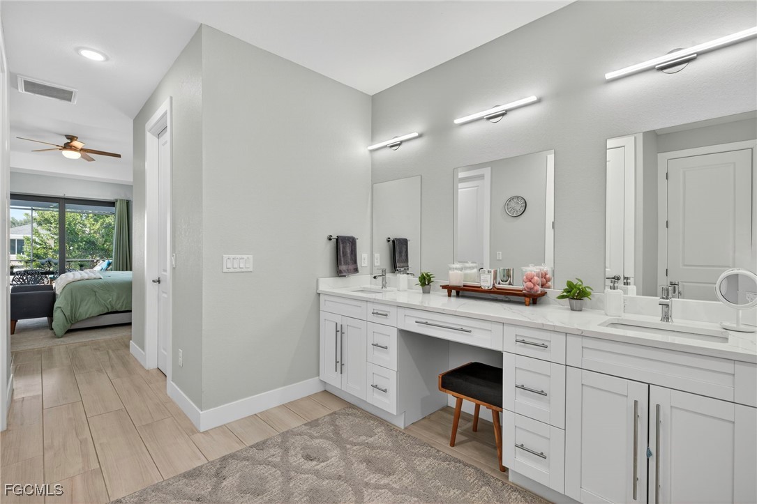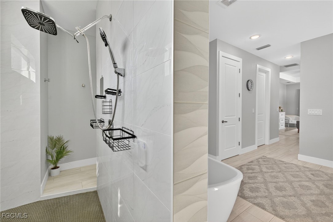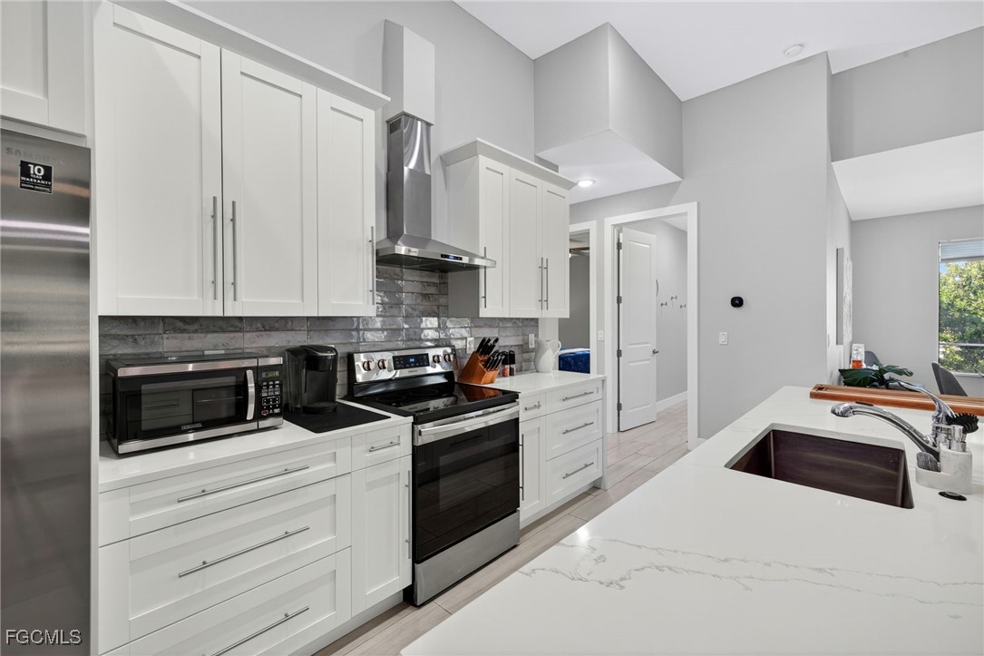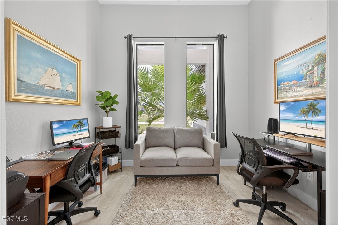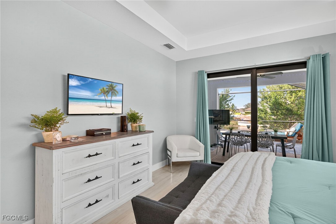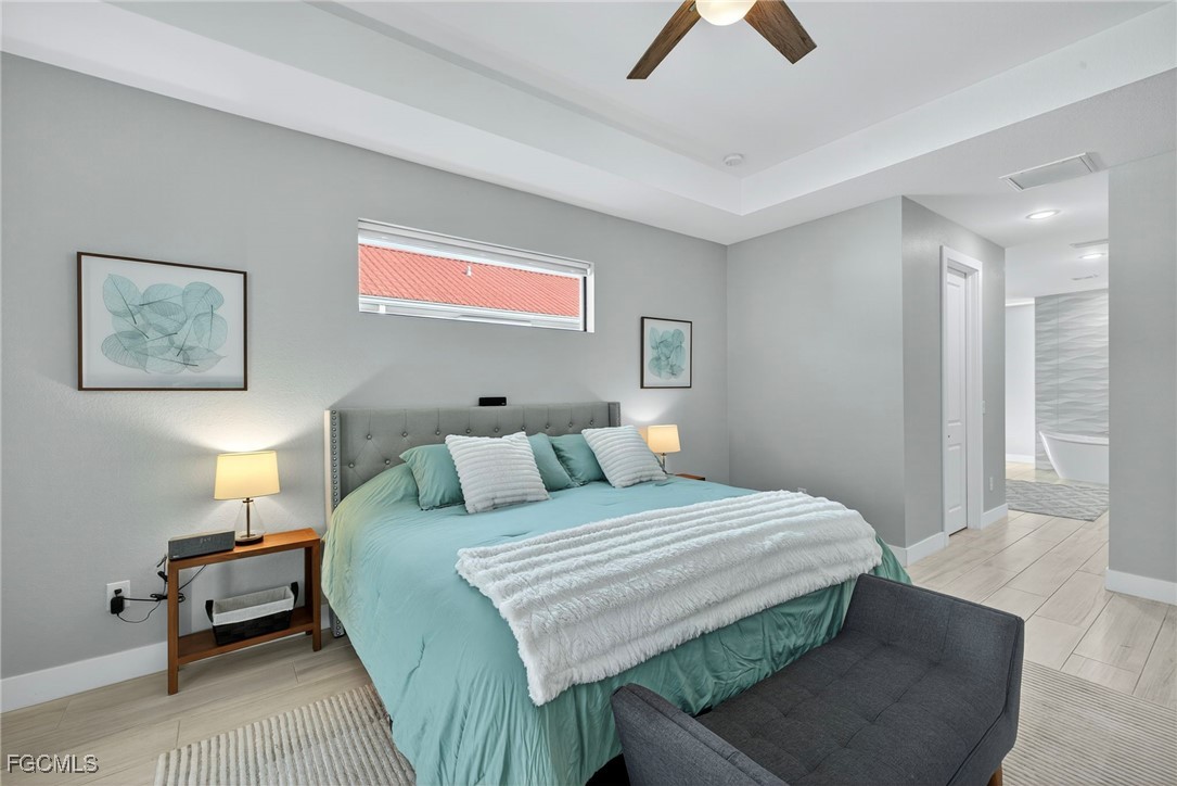 Coastal Modern Florida Living at its Finest! Waterfront Heated-Pool Home in SW Cape Coral. *All Assessments Paid* and *No Flood Insurance Required*. Experience elevated design and attention to detail in this 2021-built waterfront pool home located in the highly desirable Southwest Cape Coral. Perfectly situated on a freshwater canal with '2024 Composite Dock, this Coastal Modern residence blends refined finishes, open spaces, and a serene color palette to create a bright and elegant atmosphere throughout. Step inside to discover volume ceilings, high-end finishes, and a seamless open-concept floor plan connecting the great room, dining area, and gourmet kitchen. The adjoining office/den is thoughtfully sectioned off from the living area by a stylish sliding barn door, offering both privacy and versatility ideal for a home office or guest space. A modern electric fireplace with adjustable lighting provides an inviting focal point perfect for year round ambience, with or without heat. The home features tile flooring throughout, modern ceiling fans in every room, a walk-in pantry, and an indoor laundry room with sink for added convenience. The primary suite spans the entire right wing of the home and offers private access to the pool area. Its luxurious en-suite bath includes a slipper-style soaking tub, dual vanities, and a spacious walk-in shower. The guest bedrooms, each with walk-in closets, are located on the opposite side for maximum privacy. The guest bath includes pool access. Step outside to your outdoor oasis, the spacious undercover lanai showcases paver decking through out creating a perfect area for family gatherings and entertaining or peaceful waterfront relaxation at pool side. Enjoy the outdoor shower and take in the tranquil canal views that make this home feel like a resort retreat. Comfort and safety in mind, this home is in X Flood Zone *No Flood Insurance Required* Huge Savings! Features hurricane shutters for all Energy Efficient doors and windows, providing storm ready peace of mind and year-round comfort. The dock provides easy access for kayaking, boating, and fishing, and additional landscaping enhances privacy, creating the perfect backdrop for outdoor living. Additional features include a sprayed epoxy-style finish on the garage floor, offering durability, a clean modern look, and easy maintenance, the perfect touch to complement this move in ready home. City assessments have been paid in full, making this home completely move in ready with no additional expenses. Conveniently Located to Cape Harbour, the Westin Resort, Downtown Cape Coral, Beaches and much more. Why wait to build? This barely lived in 2021 home offers everything you need to start enjoying the Florida lifestyle today. Whether you’re looking for a full-time residence or a vacation home retreat, this property offers *Endless Opportunities* for the right buyer. Schedule your private showing today!