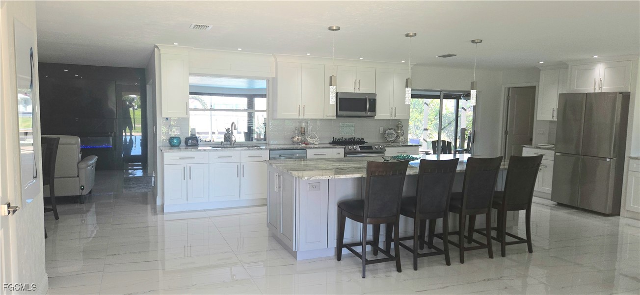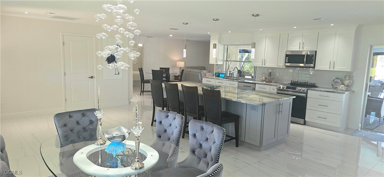 This home is an entertainers dream with the stunning reimagined kitchen, open concept living area, 4x2 tile throughout, updated bathrooms, recently resurfaced pool, impact windows and Kevlar screens, outdoor kitchen as nice as the one inside and an outdoor space to help you live your Florida dream.