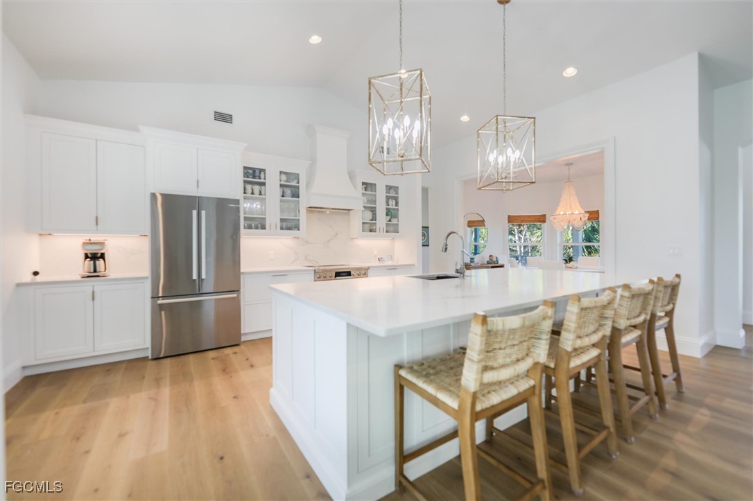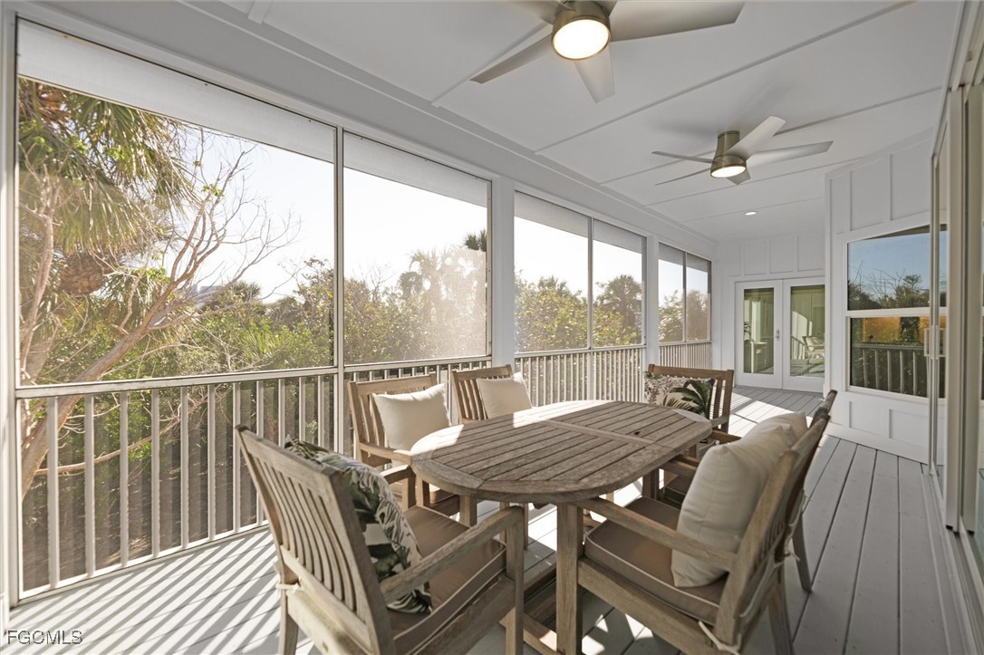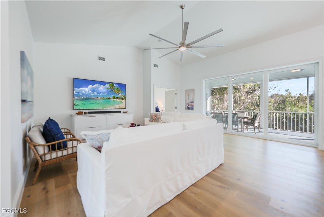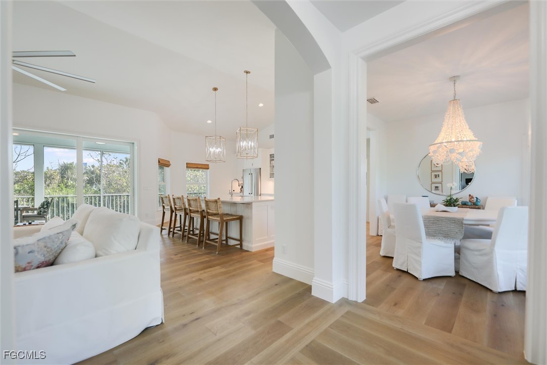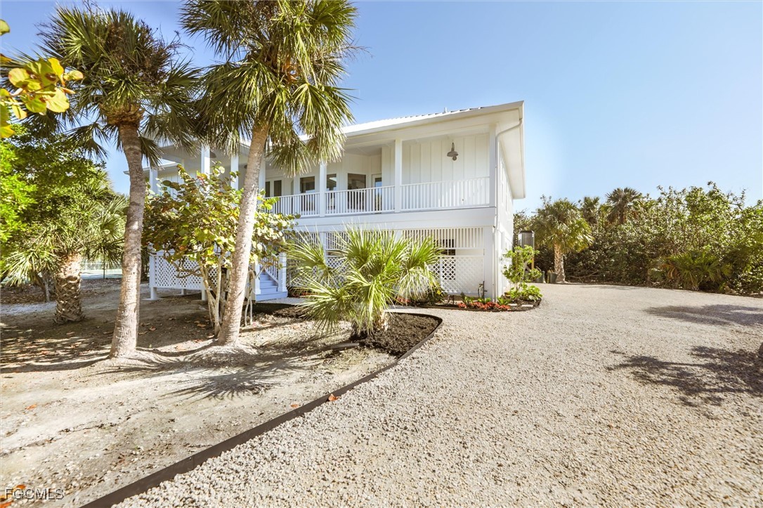 This is the Florida home you have been waiting for… Conveniently located in the small, gated community of Herons Landing, this Architecturally Pleasing Florida-style home offers 4 bedrooms / 2 bathrooms and a den (office) that can easily be a fourth bedroom. The interior is light, bright, and airy, with soaring vaulted ceilings. Features a gourmet chef's kitchen with Bertch Cabinets, Quartz countertops and backsplash, a large 5’x10’ center island, illuminating under cabinet lighting, a designer range hood, Bosch induction cooktop /stove, dishwasher, and refrigerator. Beautiful engineered French oak hardwood throughout the living area adds to the open concept and spacious contemporary design. Perfect for entertaining with a dedicated dining room and spacious living area, large screen lanai, and open-air front porch. The sliding doors between the living area and screened lanai open completely. The Primary Suite is a luxurious retreat with a private bathroom featuring a marble shower and floors, Kohler fixtures, a freestanding bathtub, and a double sink vanity. Guests will feel pampered in the three luxurious bedrooms with an impressive hall bathroom complete with a marble walk-in shower and floors, double vanity, and Kohler fixtures. The laundry room has a stainless sink, garment steam system, and stackable washer and dryer. The lower level with finished energy efficient insulated ceiling offers an oversized garage for more than 3 cars and plenty of room for golf carts, bikes, kayaks, boat, and a workshop area. In 2023, many updates were completed, including a new metal roof, Pex plumbing, backflow valve, heat exchanger and programmable thermostat. 2024 improvements include hurricane-resistant PGT windows and doors, Hardie siding, new electrical panel and breakers, RainBird 4zone irrigation system, Aquasana whole-house water treatment, outdoor shower with hot & cold water, engineered hardwood floors, ceiling fans, level 5 smooth interior wall finish, new kitchen and bathrooms. Community amenities are conveniently located adjacent to the home, including rarely used resort-style pool, hot tub, pool bathrooms, abundant decking, outdoor furniture, and pickleball/tennis court. Enjoy the amenities without having to maintain your own. Homeowners have private deeded beach access for walking or riding bikes to Bowman’s Beach and a dock for kayaking or paddle boarding. This energy-efficient home has an excellent 4-point inspection report, low Florida insurance, and low utilities. It is a one-of-a-kind home and a must-see for the most discerning Buyer. This amazing property can be offered turn-key except for select personal items.
