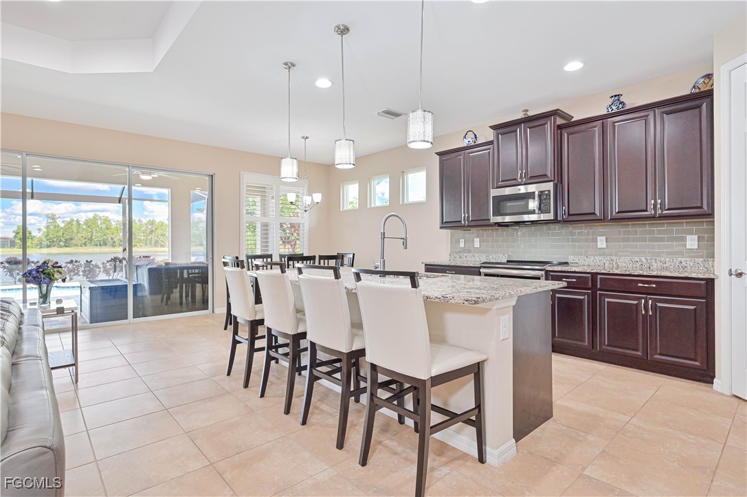 Enjoy your own private oasis with a saltwater heated pool featuring an infinity screen enclosure, perfectly situated on a premium lakefront lot with serene preserve views—ideal for outdoor entertaining or peaceful relaxation. A convenient pool bath is outside in the covered lanai.