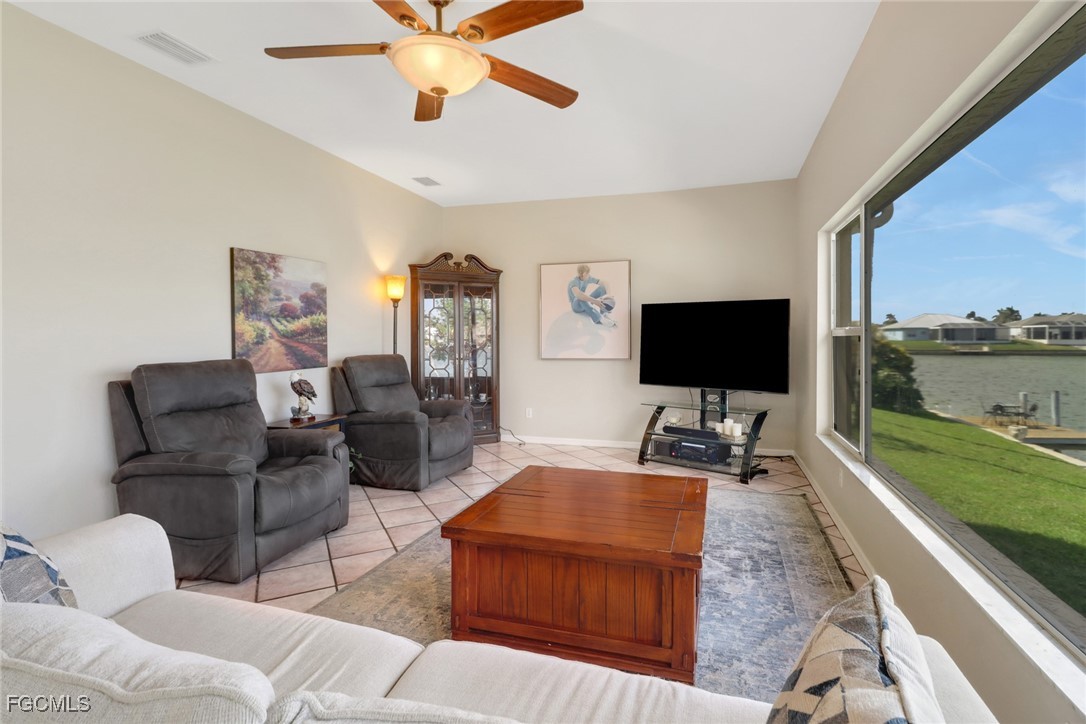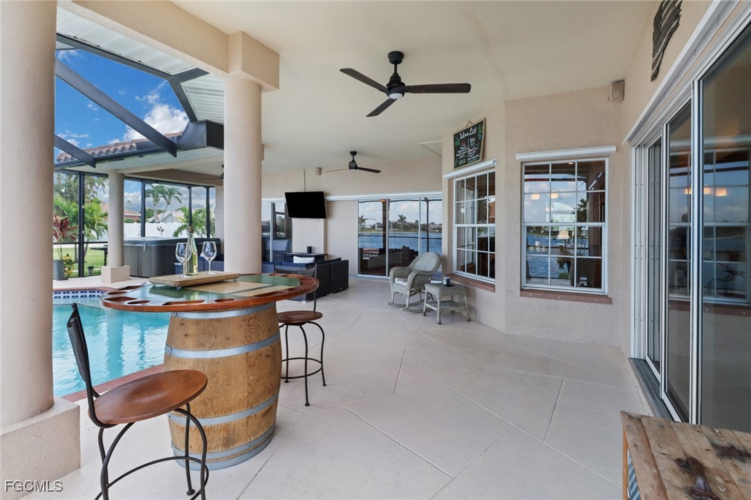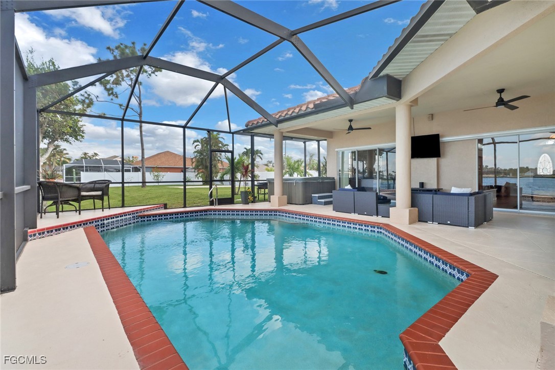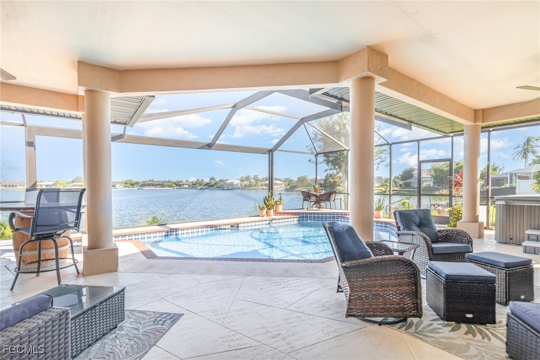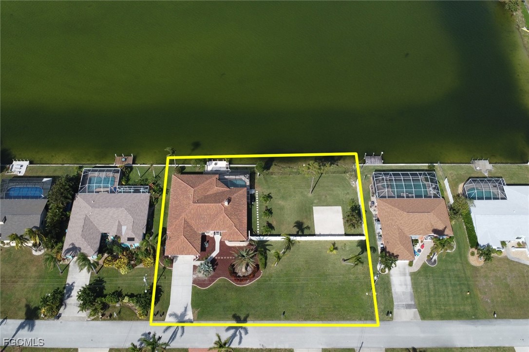 Fantastic 3 bedroom plus den 2 car garage 4 LOT SITE pool home on Seabreeze Lake!! This property boasting over 2300sf of living area has a large kitchen with granite countertops and stainless-steel appliances, large living and family room with high ceilings and beautiful lake views, tile in all living areas, spacious master bedroom and bathroom with granite countertops and soaking tub, generous sized guest rooms and den, loads of outdoor living space in the pool/lanai area and concrete dock overlooking the lake! So many extras on this house including tile roof, lush landscaping, pass through fireplace in living room and master bedroom, all 4 lots are fenced, assessments paid and NOT IN A FLOOD ZONE and so much more! This property is located in the SW Cape and in an area of newer homes, close to parks restaurants, schools and shopping!
