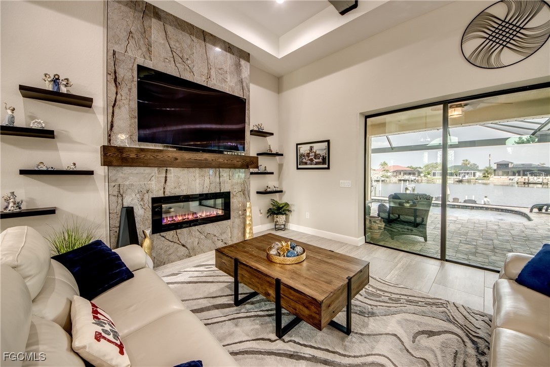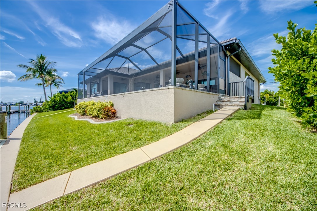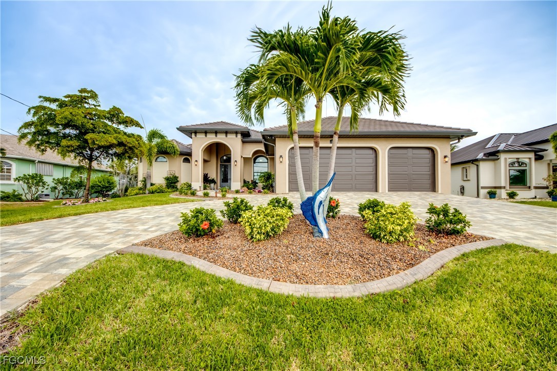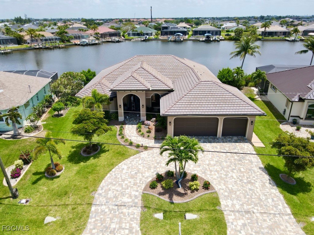 ULTIMATE BOATERS PARADISE WITH NEW LARGE 2022 HOME! On Rare Saltwater CEITUS LAKE, where DOLPHINS, MANATEE'S, TARPON, and many other Marine Wildlife play in your backyard. Open Water is a short scenic 15 min. Boat Ride to Gulf of Mexico, with access to the Islands and beaches. The Dock is equipped with a 10,000 pound Boat Lift for up to 30ft boat, separate Double Jet Ski Platform with its' own lift for easy access in and out of water and large seating area. The Platform keeps the Jet Ski's out of water for easy rinsing/boarding. Fish off your Dock! High End Custom Builder Personal Residence on Saltwater Lake and a Boaters Dream! Large 4/2 with 2548 Living! Modern Design and modern finishes are well thought out with no expense spared. Home was built 2022 to withstand the Florida Extreme Climate with high Elevations, Hurricane Windows and Doors. Foam Insulation for Maximum Air Tight Seal and savings on A/C & Heat. Designed for viewing the Water from most rooms! Sunrises and Sunsets cannot be beat over the Lake! HEATED SALTWATER POOL with Elevated Pool area with Waterfalls, Sun Shelf, 2 pumps, and Separate Therapeutic Jacuzzi Spa for Ultimate Relaxation! Grand Entry with Estate Double Iron Doors into Foyer and you will need to stop and catch your breath. The 8 ft. High Impact Glass Sliders, the TV Wall with Fireplace/Mantle and Tile from Floor to Ceiling, the Exposed Beams with Coffered Ceilings, Large plank porcelain tile floors, views to pool and water that are never ending. The Chef's kitchen boasts: High End Black Stainless Steel Appliances with Wall Oven, Wall Microwave, Induction Range/Oven all with Convection Cooking, Pot Filler, Range Hood, Custom Double solid Granite sink, 4 door Refrigerator, Walk in Pantry, Backsplash. White/Gray Color Palette for cabinets. Extra large Inside Laundry room, Oversized 3 car garage with $4,000 worth of Custom Cabinets/2 large Shelves. Over garage has a 12X14 floored area w/bright lights for storage. Foam Insulated Garage Door for highest efficiency, 8' Solid soundproof Doors, Coffered Ceilings in Master Bedroom, Additional Hot Water Heater 2024 in Master Bath for Instant Heat, 90 degree panorama windows in Dinette, Water/Electric on every wall outside, Elevated TV/Electric outlets, Paver Circular Driveway, Paver Pool Deck with concrete underlay, wood shelves in closets, dedicated plug for Generator outside, tile has laminate underlay to prevent cracking, whole house surge protector, Large Custom Baseboards, 14' Ceilings with 10' Ceilings in bedrooms and Ring Doorbell w/Ring Security Lights on 4 corners of home. Grand Atrium Entry, Pie shaped Lot with 100' of seawall on Lake. City Water/Sewer with small balance. Just off Pine Island Rd Corridor and Burnt Store Road. Walk to Joe Stonis Park across street. Publix/Walgreens/Restaurants at end of street. Close to new 7 Islands Entertainment District coming soon. This is Ultimate Florida Living! Virtual Tour has 95 photos & Floorplan don't miss it!