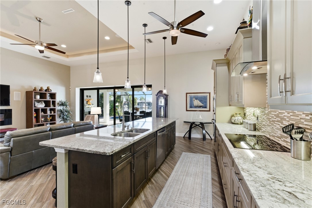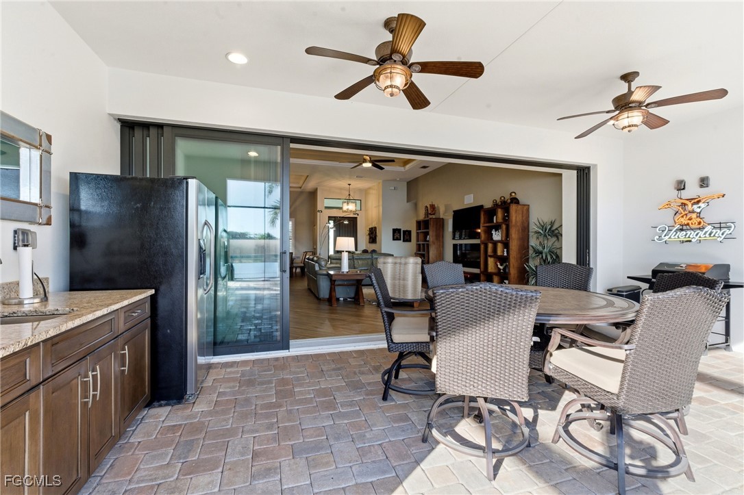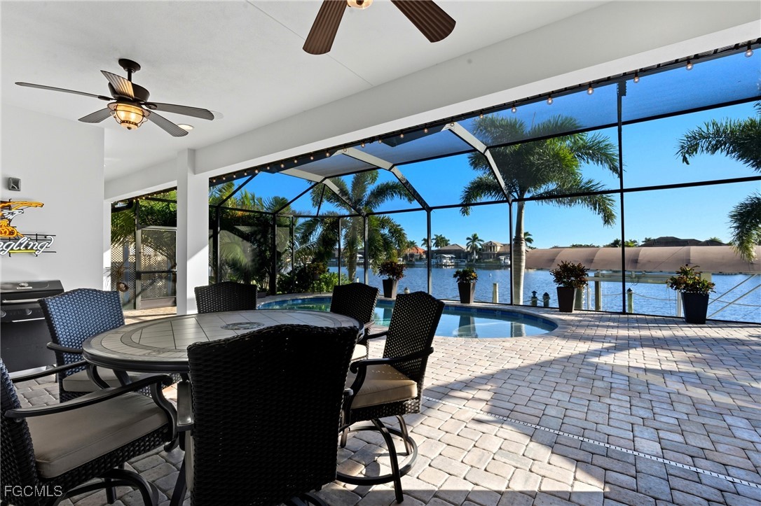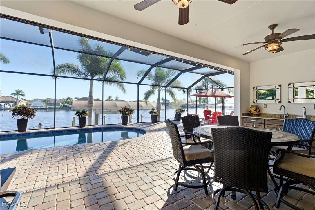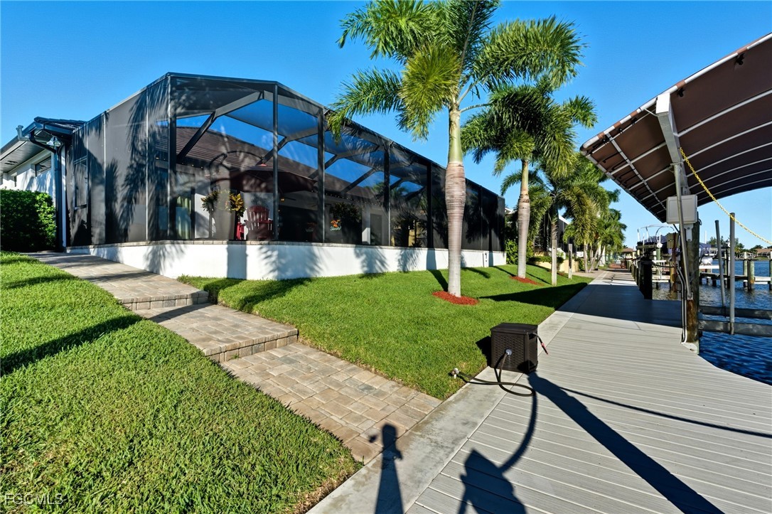 Located on the 400-foot-wide Ceitus Lake—with direct access to Pine Island Sound and beyond—this home includes a captains walk, wrap-around composite dock, a 10,000 lb. boat lift, and a boat canopy. Additional highlights include wood-look tile flooring throughout (with carpet in the guest bedrooms), impact windows and doors, a new metal roof (2023), and an air-conditioned storage area off the garage—ideal for seasonal items, coffered ceiling in main bedroom.
