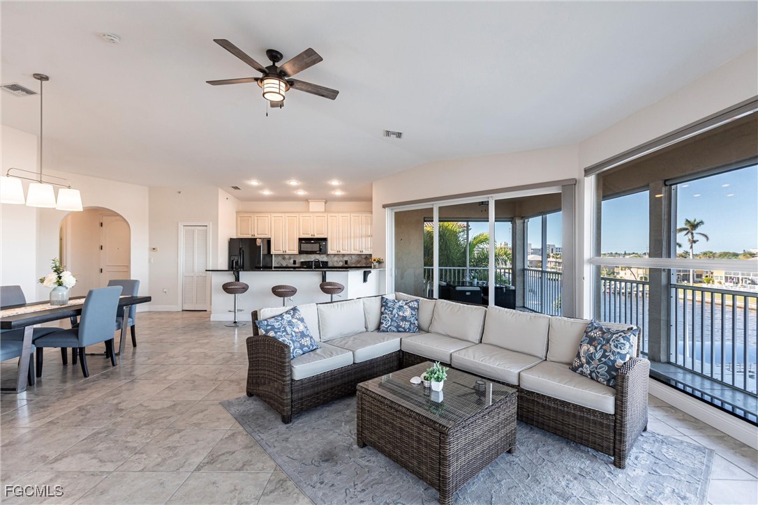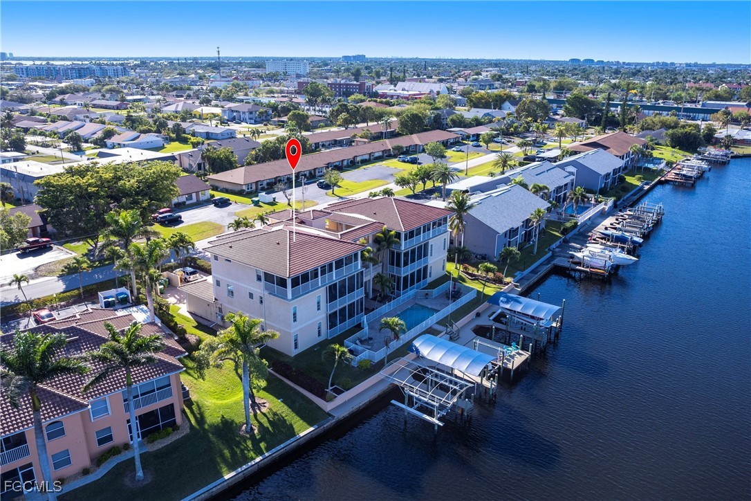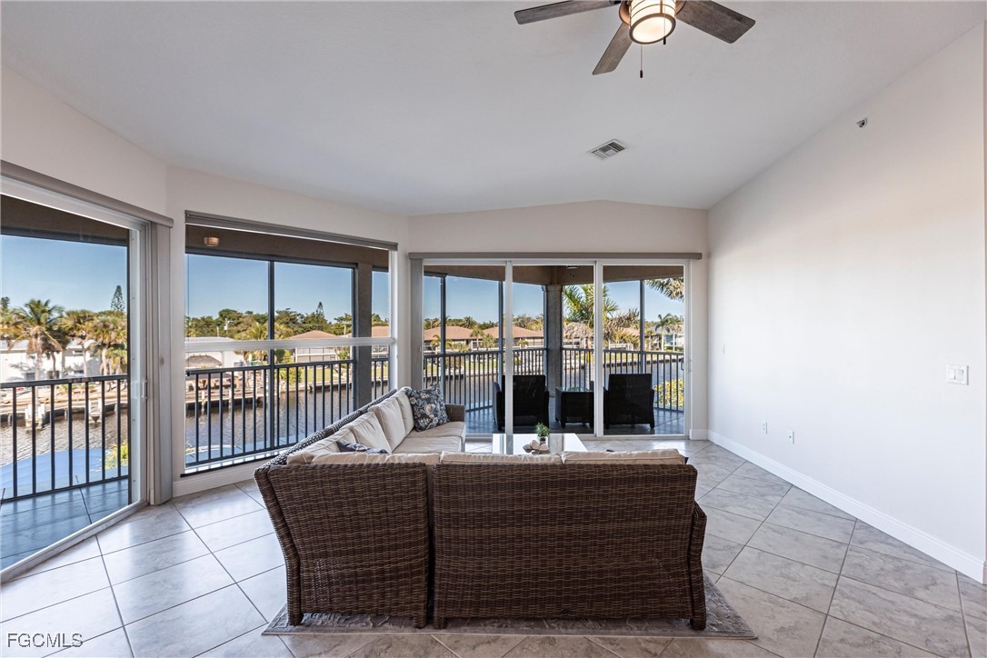 Balmy Carefree Florida LIving!!!That's the only way to describe this spacious luxury condo located right on the Rubicon Canal. When space, character, and views are what you are looking for, YOUR WAIT IS OVER!! This lovely 3rd Floor unit has 2 bedroom 2 and a half bathrooms plus a bonus room for a small office or storage or even bunk beds for the Grandkids. Additional Features include, granite countertops, wood cabinets, tile floors in all the main areas, large bedrooms, open living space with large pocket sliders and expansive windows overlooking the waterway, high ceilings, walk-in closets, and much much more. Comes with a one car garage and an extra storage closet for beach or hobby equipment. There is an assigned boat slip with a 10,000lb lift with newer sun protective canopy and composite captains walk. Just hop on your boat and before you know it you'll be in the Caloosahatchee. You will definitely want to see this one. ONLY 6 units in the entire building.