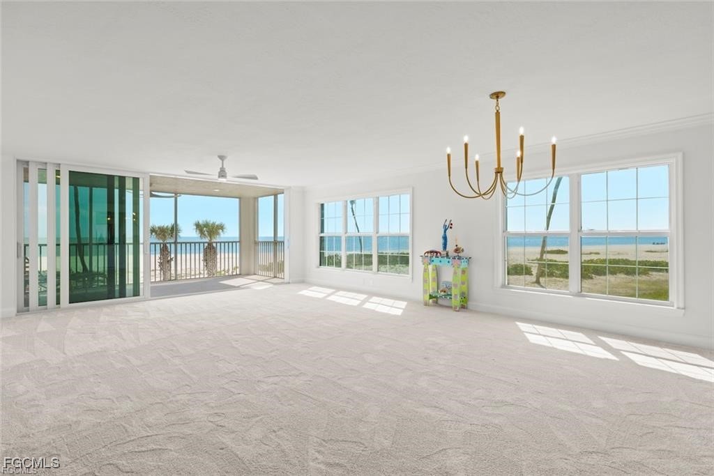 Wow! What is sunset! Positioned on the west side of the building with unobstructed views down the beach of West Gulf Drive rests this exceptional unit with 3200 ft.² of living space offering three bedrooms and three full baths in addition to a den. This unit has been expertly remodeled from the studs with 100% new hurricane-rated windows and doors throughout and is ready for occupancy this season. Every aspect of this reinvention has been well thought out with the use of today’s finest materials for all of the appointments. The primary retreat offers stunning views, copious closet space, and a bath with separate soaking tub and shower. All suites are sizable, the east bedroom with ensuite provides views overlooking the pool from the private lanai. The spacious lanai runs the length of the unit beachside with easy access to the stairs leading you to the private beach path. Seascape is a small complex consisting of only 18 units along the coveted Gold Coast on Sanibel Island. Lush landscaping is underway. 2 covered parking spaces included.