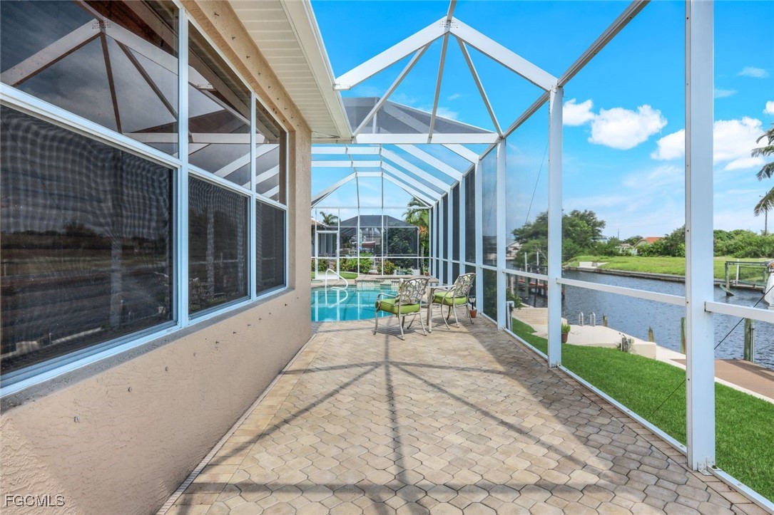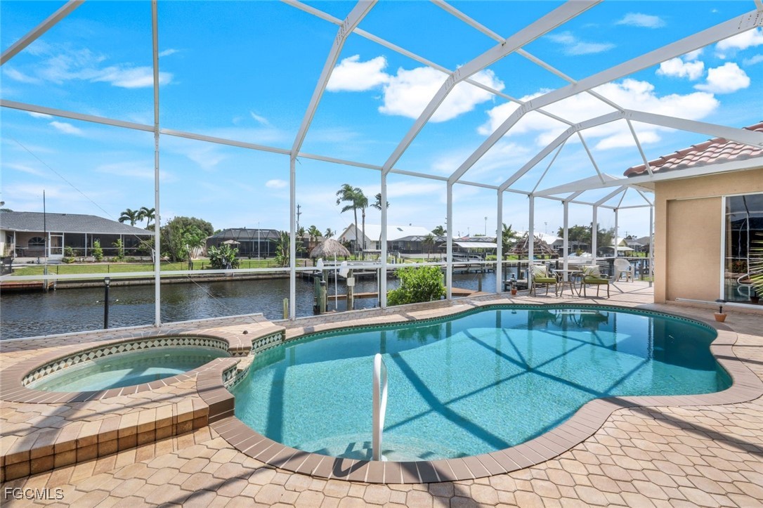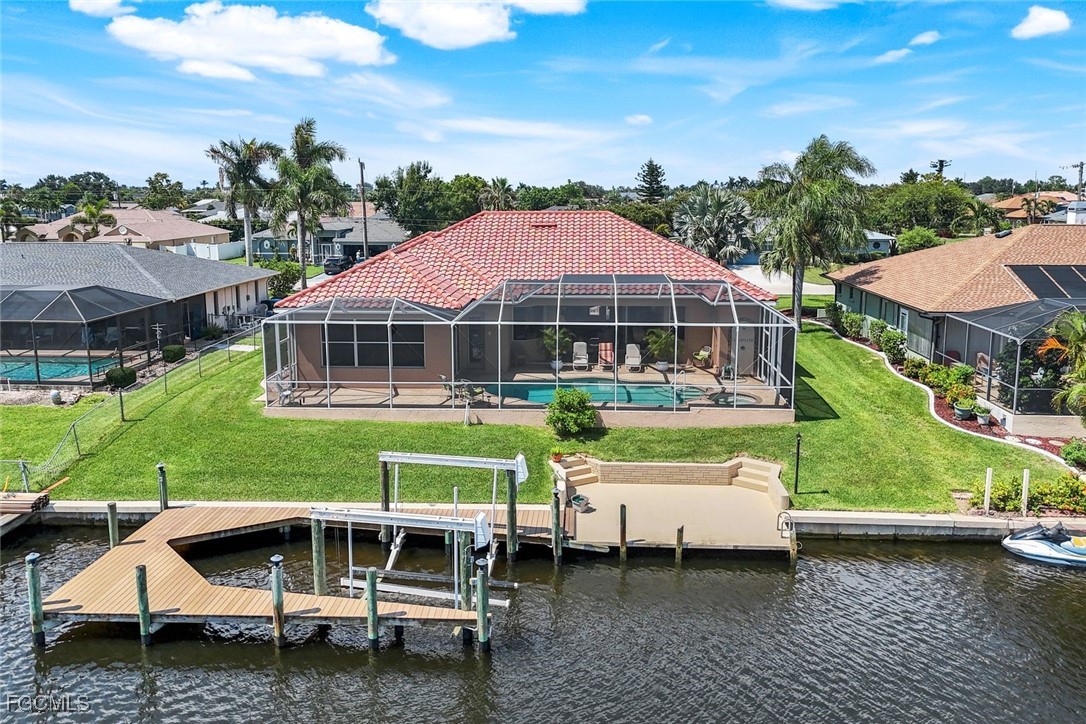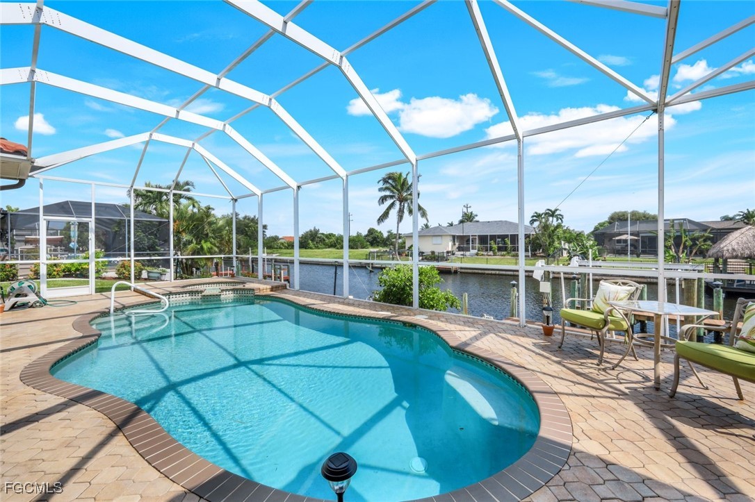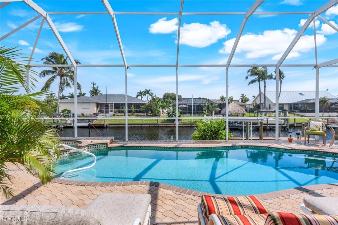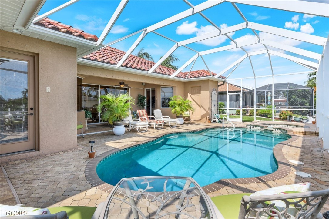 Spacious Gulf-Access Pool Home in the Heart of Pelican — Move-in Ready & Competitively Priced!!! Welcome to your Gulf-Access pool home in the highly desirable Pelican area of SW Cape Coral. This spacious 3-bedroom, 2.5-bath plus office home offers nearly 2,500 SQUARE FEET of living space, combining comfort, versatility, and the easy coastal living Cape Coral is known for. With its SOUTHERN REAR EXPOSURE, Boating Access, and Prime Location near Shopping, Dining, and Beaches, it’s a standout opportunity for anyone seeking the Best of the Florida Lifestyle! The open-concept great room design highlights vaulted ceilings and 10-foot sliders that bring in abundant natural light and create a smooth flow between indoor and outdoor living spaces. The kitchen was designed for real-life use, offering generous counter space, a center island with prep sink, walk-in pantry, solid wood cabinetry, and stainless-steel appliances—ideal for entertaining or everyday meals. The primary suite feels like your personal retreat, with a cozy sitting area, illuminated tray ceiling, and dual walk-in closets. The ensuite bathroom includes dual vanities, built-in make-up vanity, a relaxing soaking tub beneath arched windows, and walk-in shower with bench and niche. Two additional large bedrooms share a full bath, and the large office off the main living area can easily function as a fourth bedroom, featuring coffered ceilings and direct slider access to the lanai. Step outside to a covered dining area and open space for sunning. The free-form pool and spa area is a showpiece, surrounded by interlocking pavers (matching the driveway), framed by mature landscaping, and enjoying a southern rear exposure — ideal for soaking up Florida’s sunshine all day. Boaters will love the composite dock with captain’s walk and a 13,000 lb lift, giving you quick access to the Gulf. Additional features include a 2023 tile roof, a three-car garage with an air-conditioned storage closet, and a well-maintained interior that reflects pride of ownership. The Pelican neighborhood offers a convenient central location just 2.5 miles from Rotary Park and Four Freedoms Park, less than 5 miles from Tarpon Point and Cape Harbour, and within easy reach of Fort Myers and area beaches. Move-in Ready and Priced Right, this home delivers the best of Cape Coral living—space, sunshine, and a waterfront lifestyle that’s ready when you are. Don’t miss your chance to make it yours!