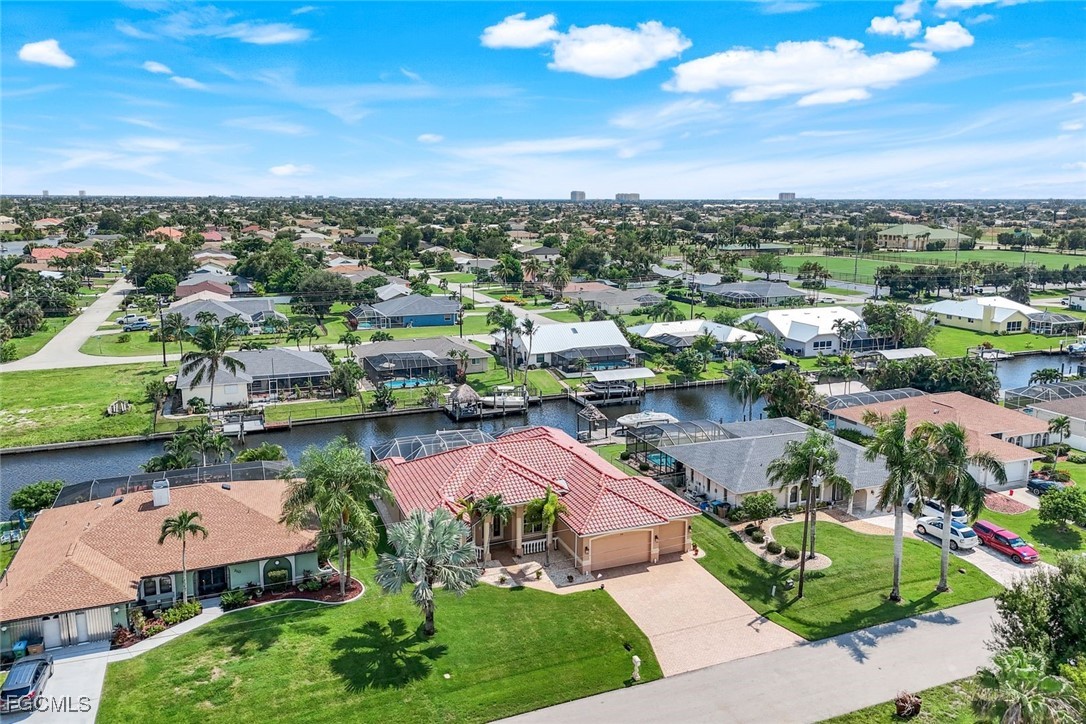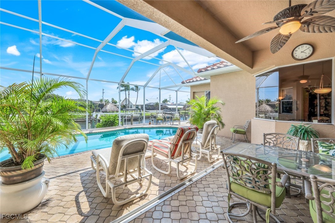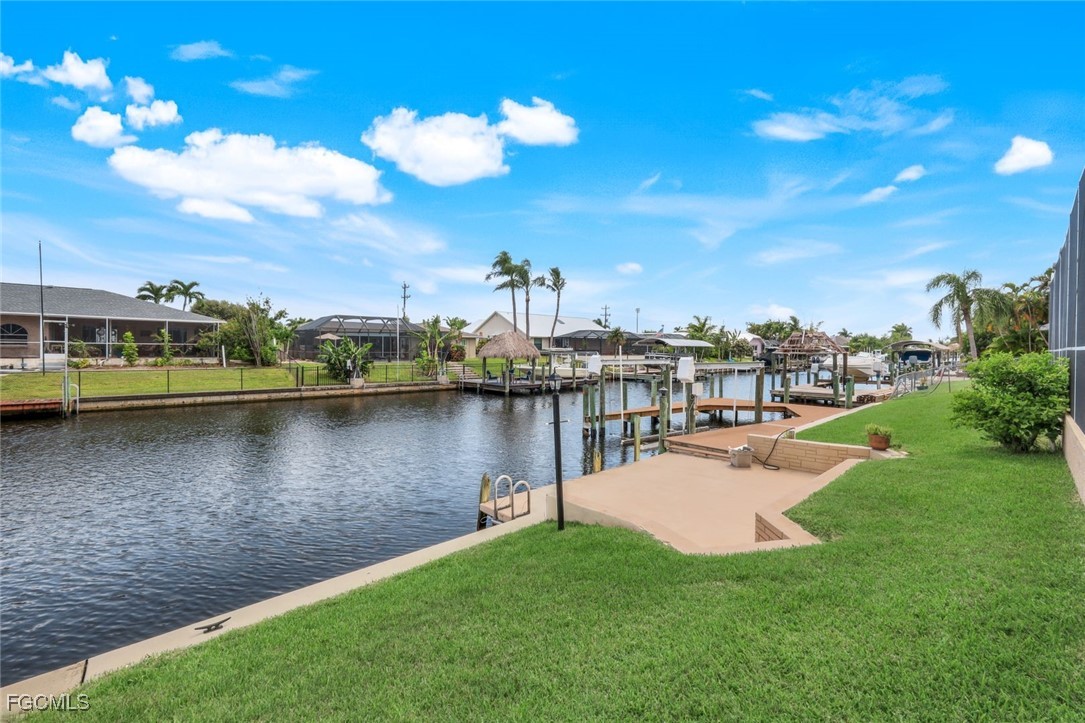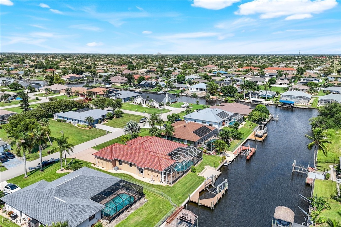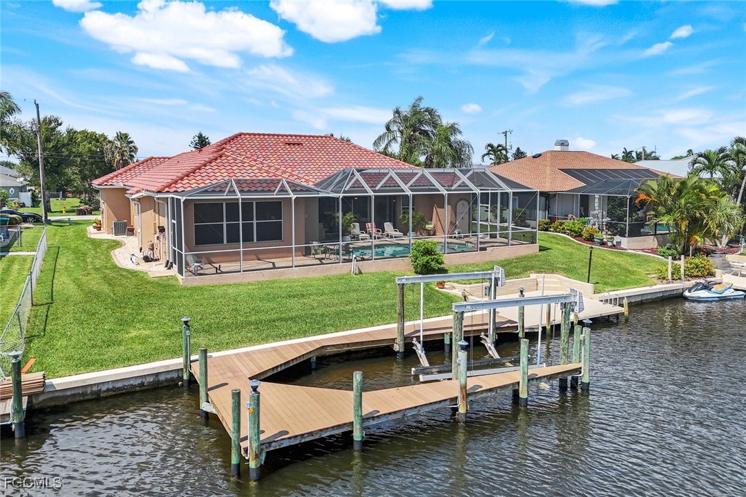 Spacious Gulf-Access Pool Home in the Heart of Pelican — Move-in Ready & Competitively Priced!!! Welcome to your Gulf-Access pool home in the highly desirable Pelican area of SW Cape Coral. This spacious 3-bedroom, 2.5-bath plus office home offers nearly 2,500 SQUARE FEET of living space, combining comfort, versatility, and the easy coastal living Cape Coral is known for. With its SOUTHERN REAR EXPOSURE, Boating Access, and Prime Location near Shopping, Dining, and Beaches, it’s a standout opportunity for anyone seeking the Best of the Florida Lifestyle! The open-concept great room design highlights vaulted ceilings and 10-foot sliders that bring in abundant natural light and create a smooth flow between indoor and outdoor living spaces. The kitchen was designed for real-life use, offering generous counter space, a center island with prep sink, walk-in pantry, solid wood cabinetry, and stainless-steel appliances—ideal for entertaining or everyday meals. The primary suite feels like your personal retreat, with a cozy sitting area, illuminated tray ceiling, and dual walk-in closets. The ensuite bathroom includes dual vanities, built-in make-up vanity, a relaxing soaking tub beneath arched windows, and walk-in shower with bench and niche. Two additional large bedrooms share a full bath, and the large office off the main living area can easily function as a fourth bedroom, featuring coffered ceilings and direct slider access to the lanai. Step outside to a covered dining area and open space for sunning. The free-form pool and spa area is a showpiece, surrounded by interlocking pavers (matching the driveway), framed by mature landscaping, and enjoying a southern rear exposure — ideal for soaking up Florida’s sunshine all day. Boaters will love the composite dock with captain’s walk and a 13,000 lb lift, giving you quick access to the Gulf. Additional features include a 2023 tile roof, a three-car garage with an air-conditioned storage closet, and a well-maintained interior that reflects pride of ownership. The Pelican neighborhood offers a convenient central location just 2.5 miles from Rotary Park and Four Freedoms Park, less than 5 miles from Tarpon Point and Cape Harbour, and within easy reach of Fort Myers and area beaches. Move-in Ready and Priced Right, this home delivers the best of Cape Coral living—space, sunshine, and a waterfront lifestyle that’s ready when you are. Don’t miss your chance to make it yours!
