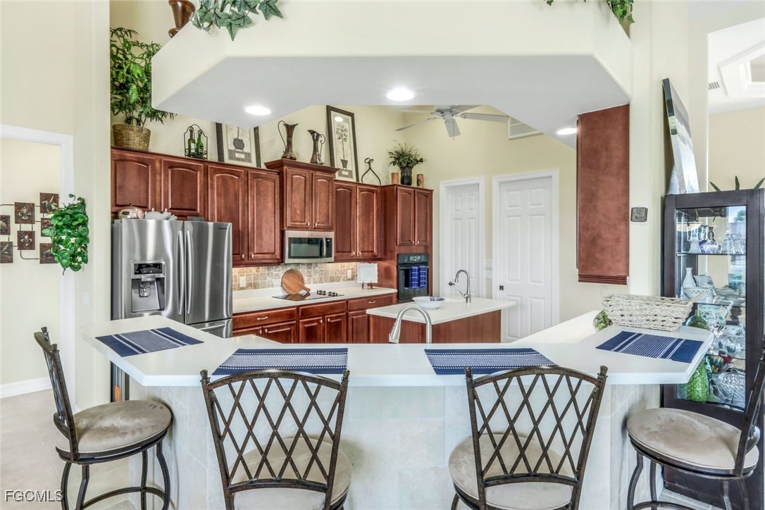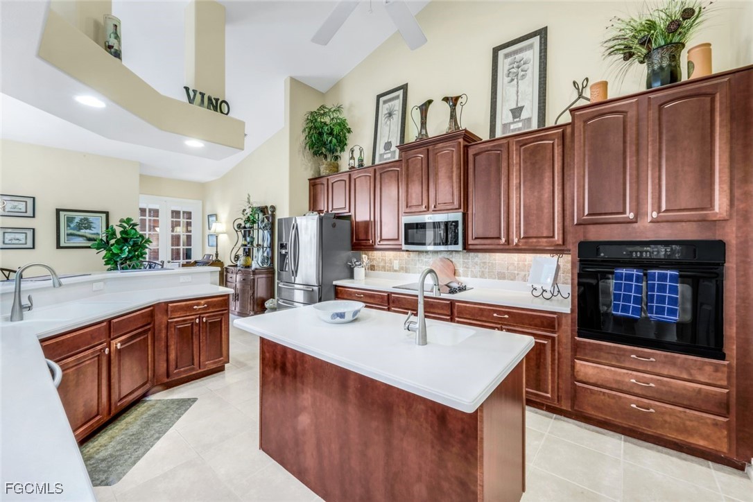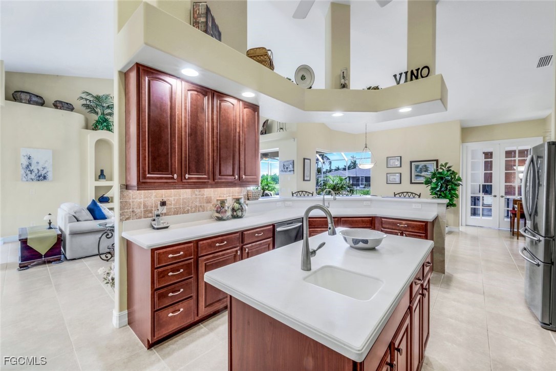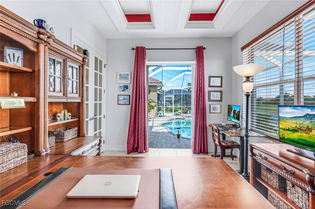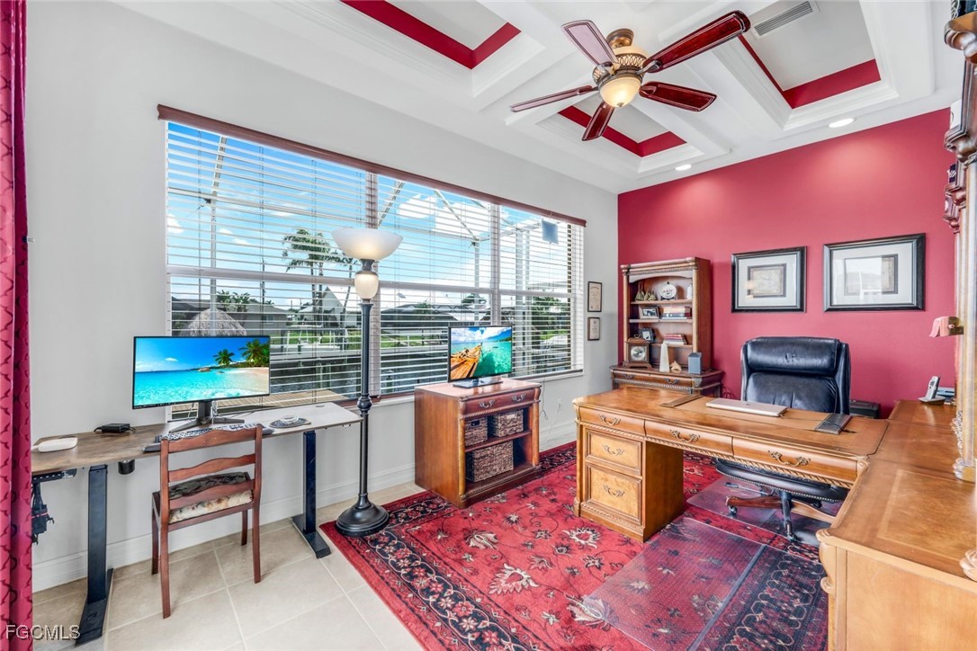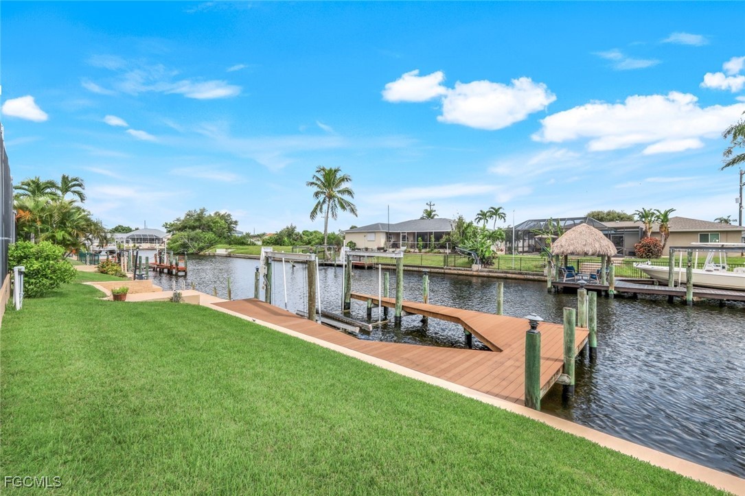 Spacious Gulf-Access Pool Home in the Heart of Pelican — Move-in Ready & Competitively Priced!!! Welcome to your Gulf-Access pool home in the highly desirable Pelican area of SW Cape Coral. This spacious 3-bedroom, 2.5-bath plus office home offers nearly 2,500 SQUARE FEET of living space, combining comfort, versatility, and the easy coastal living Cape Coral is known for. With its SOUTHERN REAR EXPOSURE, Boating Access, and Prime Location near Shopping, Dining, and Beaches, it’s a standout opportunity for anyone seeking the Best of the Florida Lifestyle! The open-concept great room design highlights vaulted ceilings and 10-foot sliders that bring in abundant natural light and create a smooth flow between indoor and outdoor living spaces. The kitchen was designed for real-life use, offering generous counter space, a center island with prep sink, walk-in pantry, solid wood cabinetry, and stainless-steel appliances—ideal for entertaining or everyday meals. The primary suite feels like your personal retreat, with a cozy sitting area, illuminated tray ceiling, and dual walk-in closets. The ensuite bathroom includes dual vanities, built-in make-up vanity, a relaxing soaking tub beneath arched windows, and walk-in shower with bench and niche. Two additional large bedrooms share a full bath, and the large office off the main living area can easily function as a fourth bedroom, featuring coffered ceilings and direct slider access to the lanai. Step outside to a covered dining area and open space for sunning. The free-form pool and spa area is a showpiece, surrounded by interlocking pavers (matching the driveway), framed by mature landscaping, and enjoying a southern rear exposure — ideal for soaking up Florida’s sunshine all day. Boaters will love the composite dock with captain’s walk and a 13,000 lb lift, giving you quick access to the Gulf. Additional features include a 2023 tile roof, a three-car garage with an air-conditioned storage closet, and a well-maintained interior that reflects pride of ownership. The Pelican neighborhood offers a convenient central location just 2.5 miles from Rotary Park and Four Freedoms Park, less than 5 miles from Tarpon Point and Cape Harbour, and within easy reach of Fort Myers and area beaches. Move-in Ready and Priced Right, this home delivers the best of Cape Coral living—space, sunshine, and a waterfront lifestyle that’s ready when you are. Don’t miss your chance to make it yours!